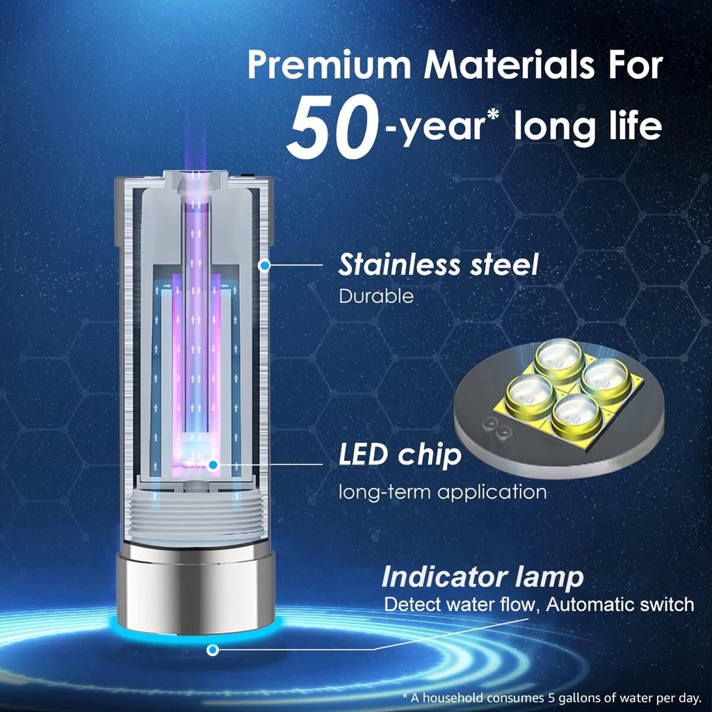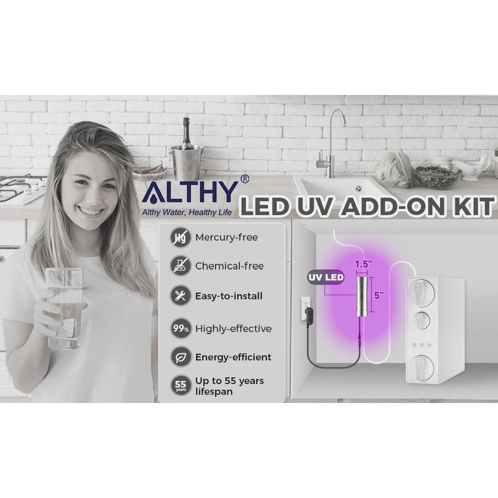 ALTHY LED UV Ultraviolet Water Sterilizer Purifier System Filter + Flow Control Switch Mercury-Free Stainless Steel 50 Year Life