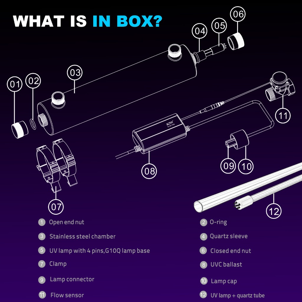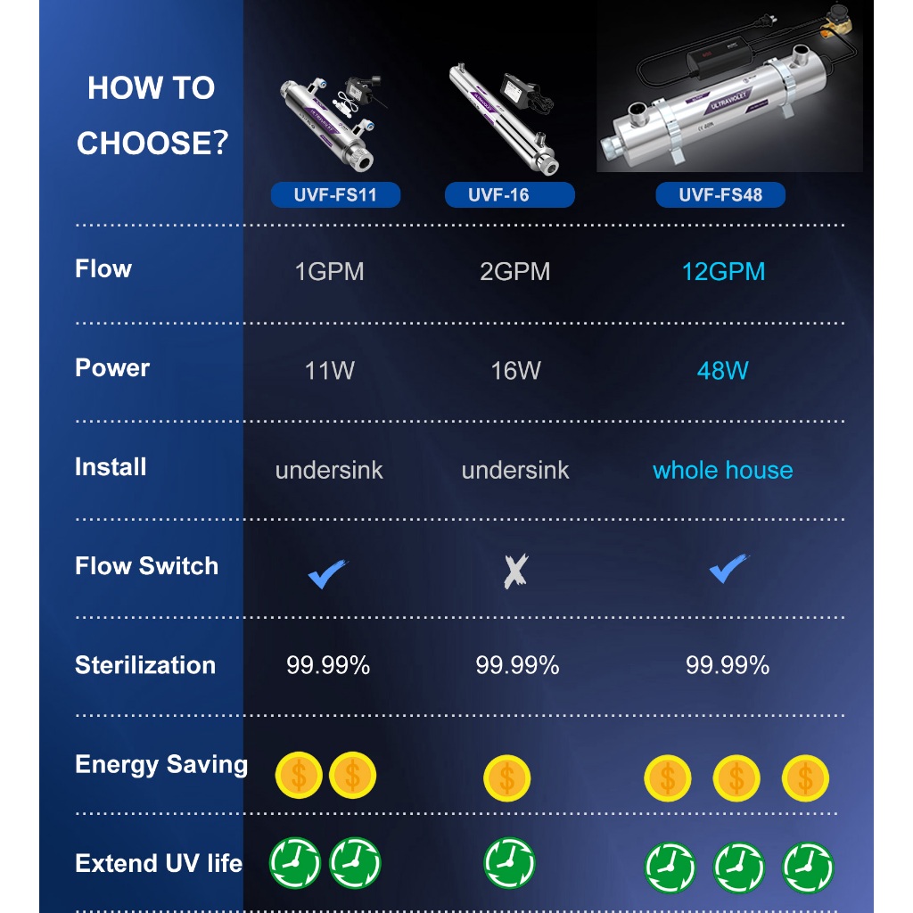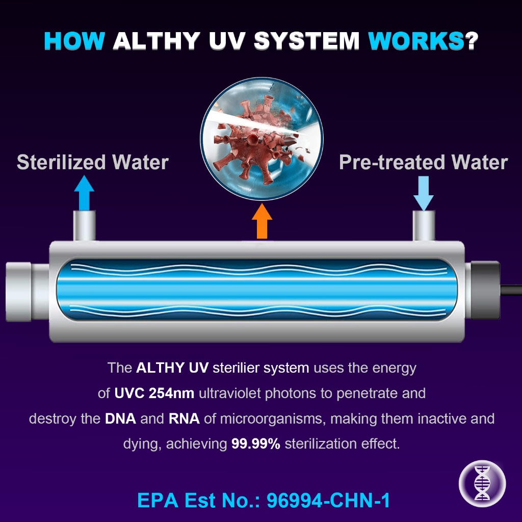ALTHY Whole House UV Ultraviolet Water Sterilizer System Filter Purifier + Smart Flow Control Switch Stainless Steel 12GPM