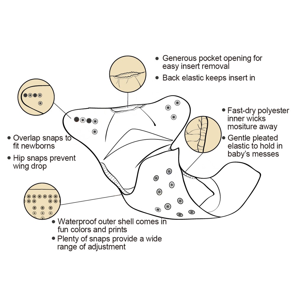 ALVA Baby Cloth Diapers Solid Color One Size Adjustable Reusable Washable Pocket Clothe Diaper