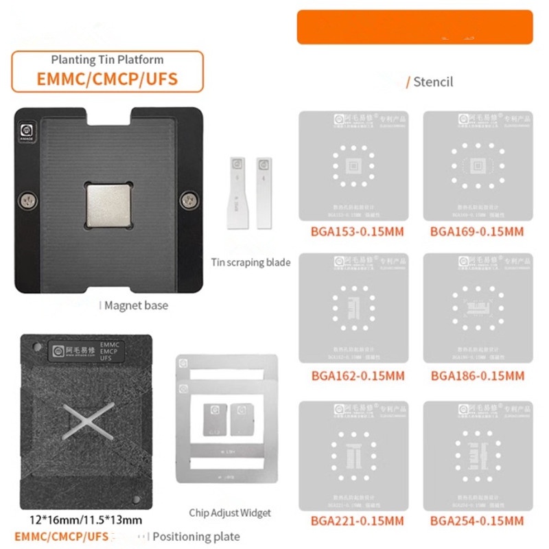 AMAOE BGA153/162/169/186/221/254 Reballing Plate Magnetic Set EMMC EMCP UFS Phone TV Solder BGA Stencil Welding Tin Plant Kit