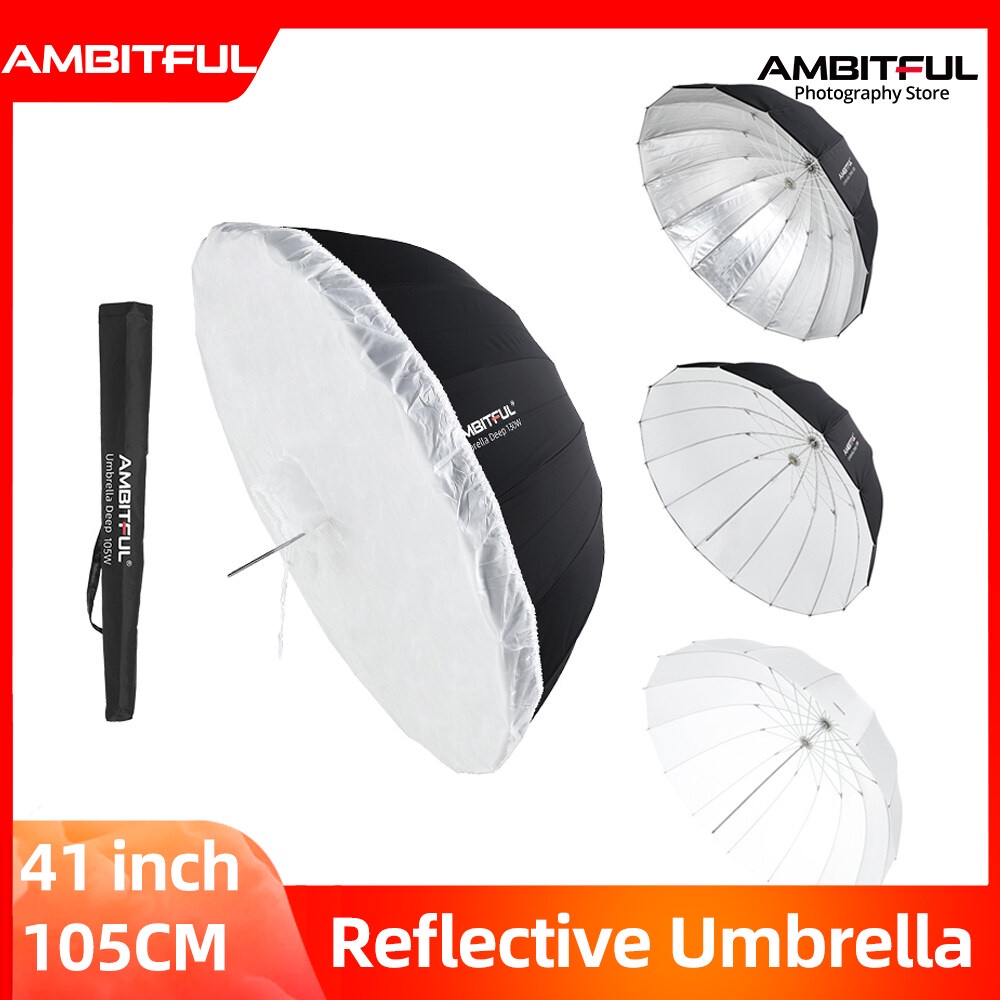 AMBITFUL 41 inch 105cm Deep Parabolic Black Silver White Reflective Umbrella Studio Light Umbrella Diffuser Cover Cloth