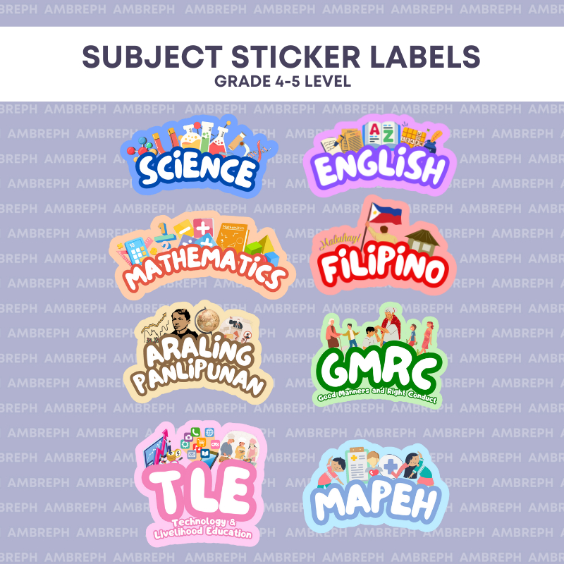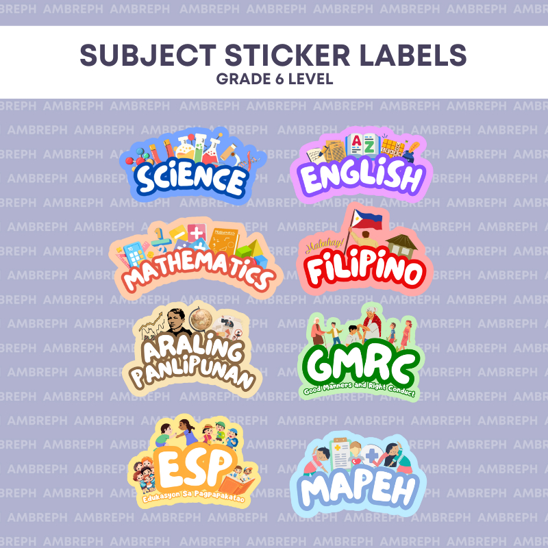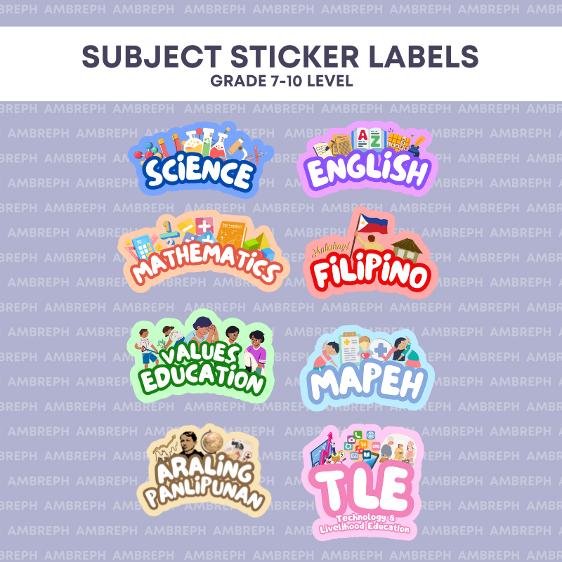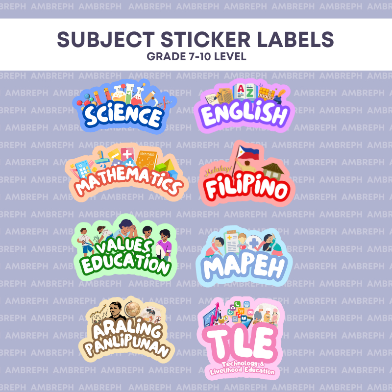 AMBREPH: SUBJECT LABEL STICKERS (SETB) PRICE PER SET l NOTEBOOK BOOKS PORTFOLIO DEPED GR1-10