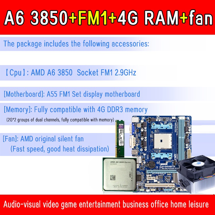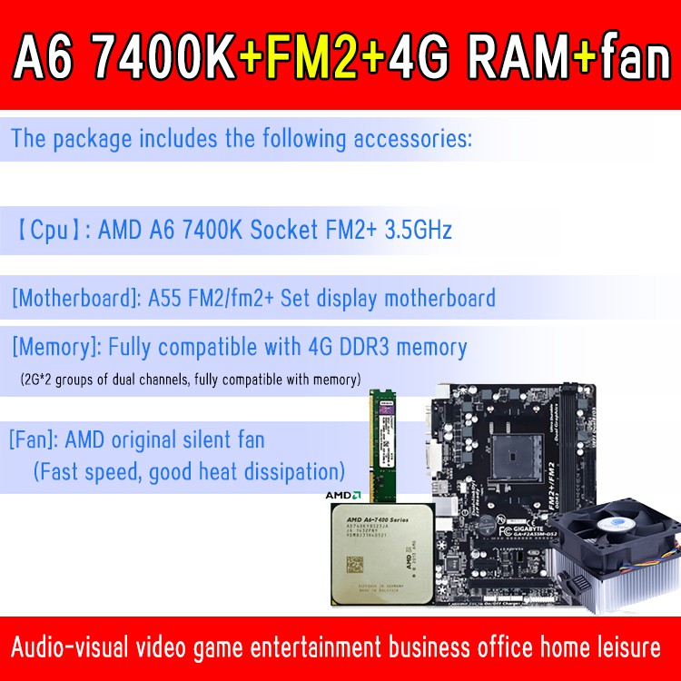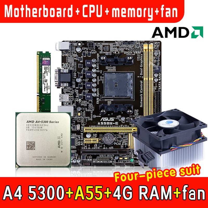 AMD A4 5300 slot FM2 3.4GHz CPU/A4 6300/A6 6400K + A55 FM2/FM2 + motherboard + 4G RAM + radiator fan four-piece discount