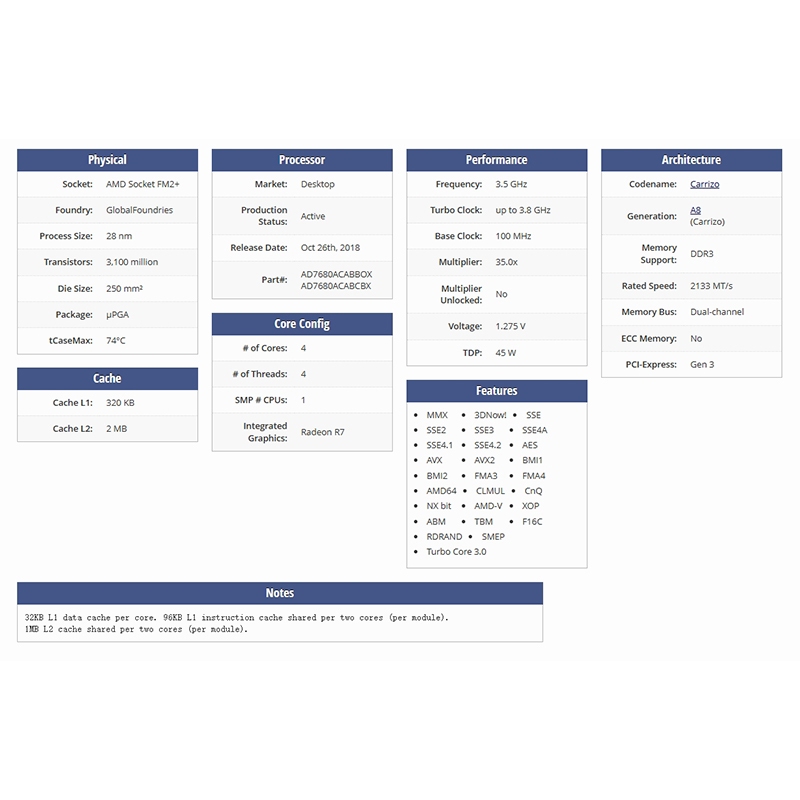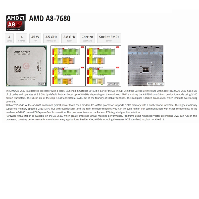 AMD A8-7680 Desktop Processor Quad Core 4 Thread 3.50GHz Socket FM2+ 45W CPU With Radeon R7 Graphics