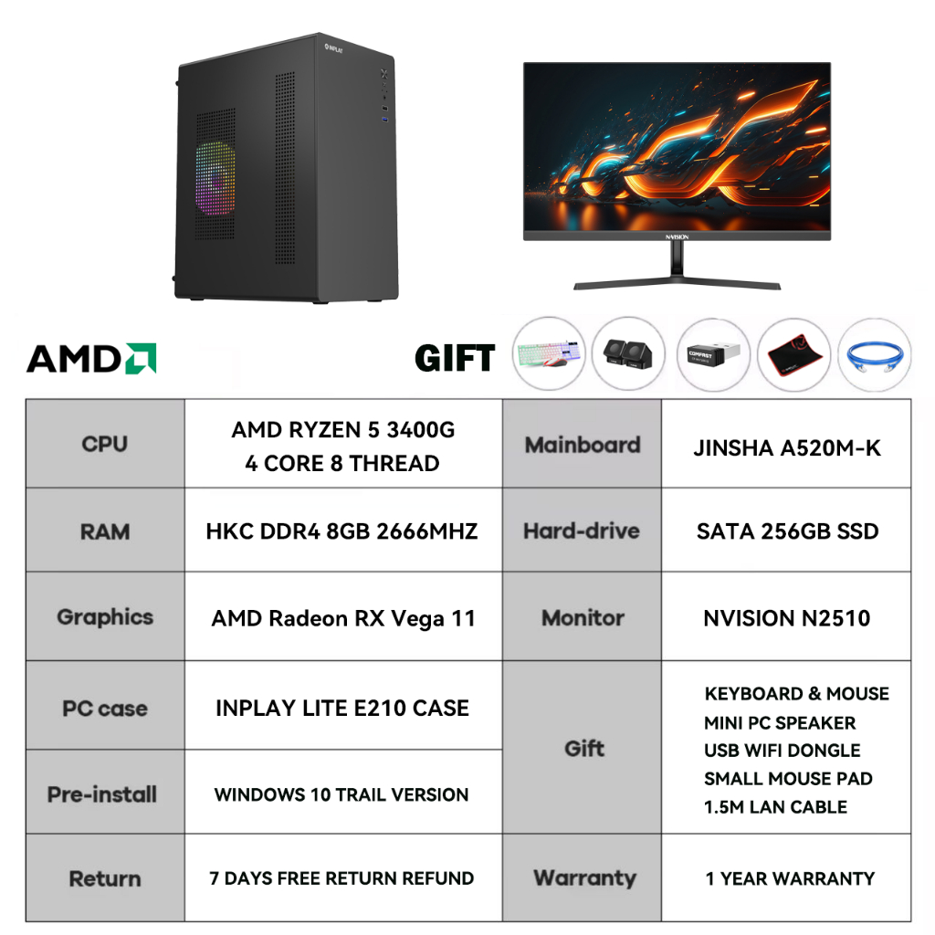 AMD RYZEN 5 3400G Gaming PC Set DDR4 16GB RAM / 512GB SSD Full Set Desktop For Office Gaming