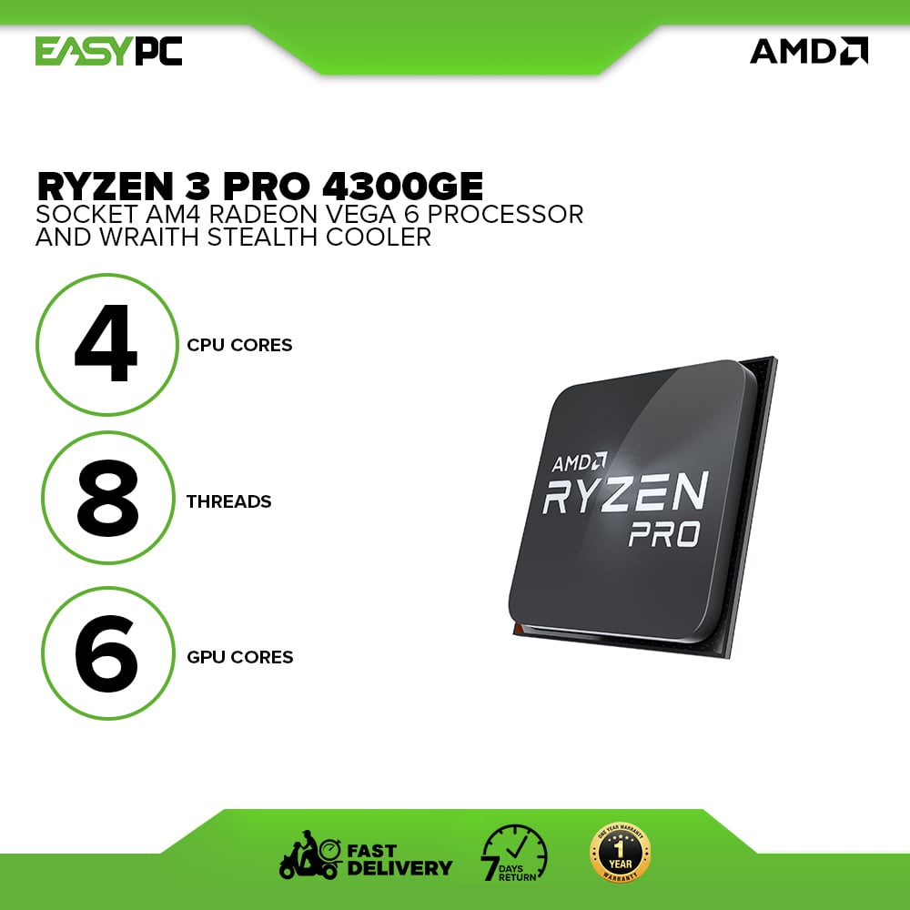 AMD Ryzen 3 Pro 4300GE Socket Am4 3.5ghz with Radeon Vega 6 Processor with Wraith Stealth Cooler MPK