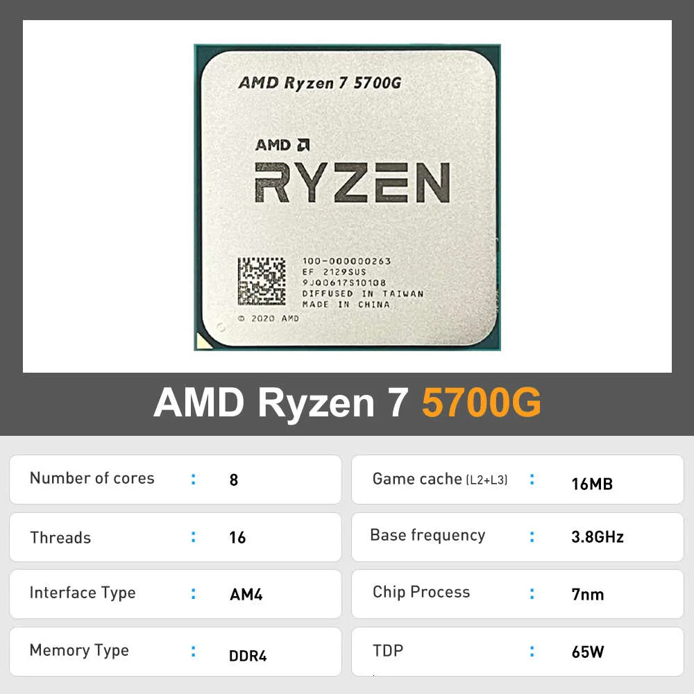 AMD Ryzen 7 5700G Desktop Processor 8 Cores up to 4.6GHz 20MB Cache AM4 Socket with Radeon Graphics