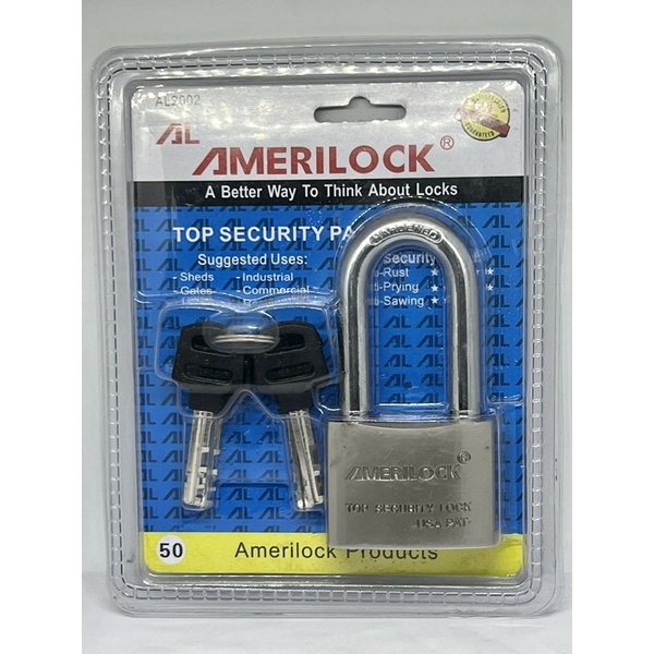 AMERILOCK Stainless Padlock Heavy Duty 50mm (rust proof & long shackle)