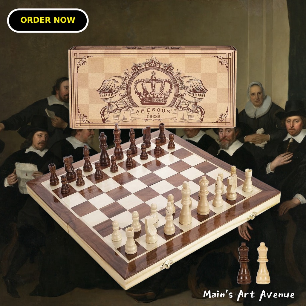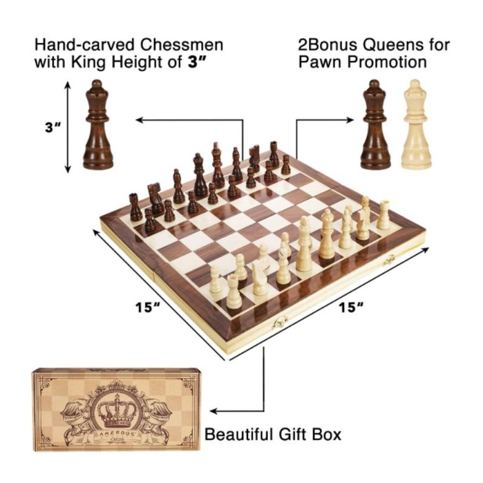 AMEROUS 15 inches Magnetic Wooden Chess Set