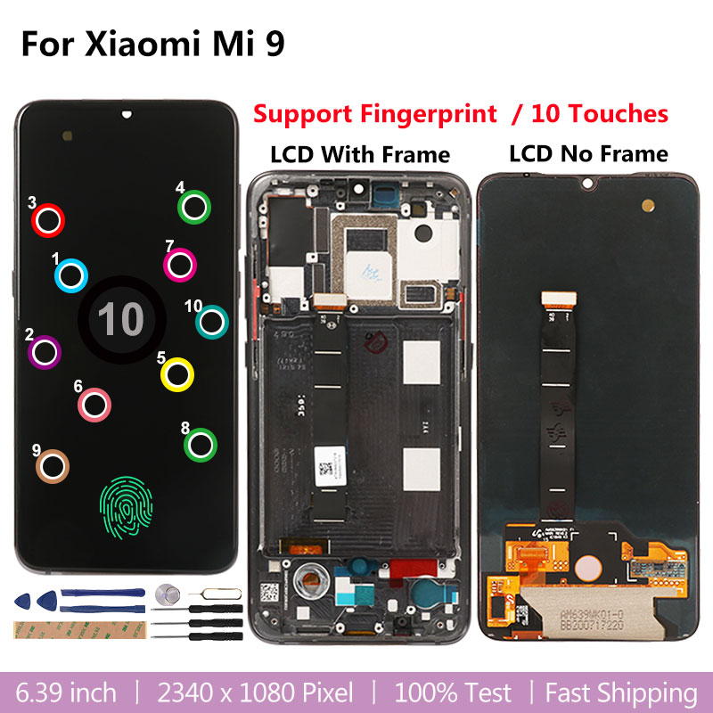 AMOLED LCD For Xiaomi Mi 9 Display 10 Touches Screen For Xiaomi Mi 9 LCD Replacement For MI9 Global M1902F1G Digitizer Screen