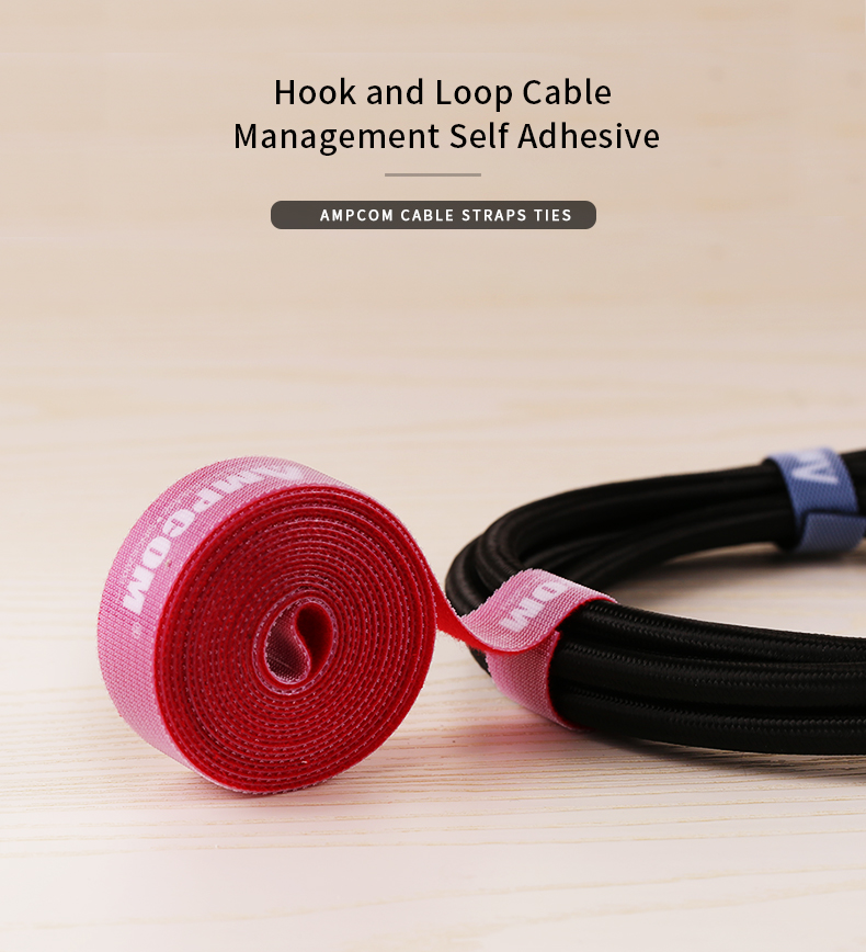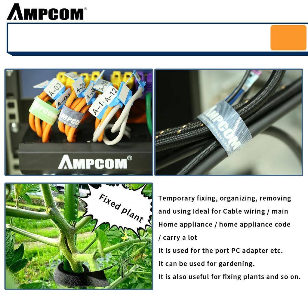 AMPCOM 5 Roll Hook-and-Loop Nylon Cable Organizer Wire Winder Clip/ Tie Wire Organizer/Color 10m(each 2M) For iPhone Samsung USB Cable