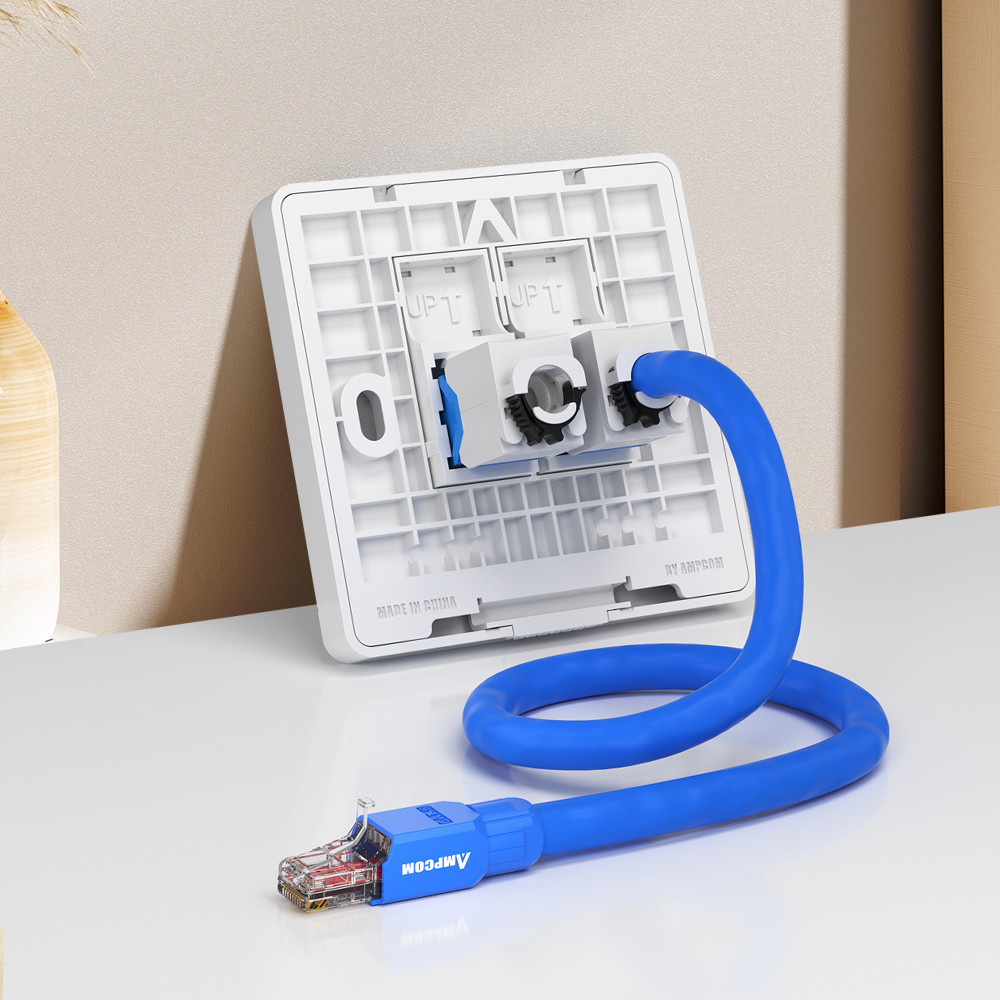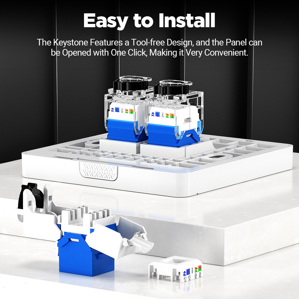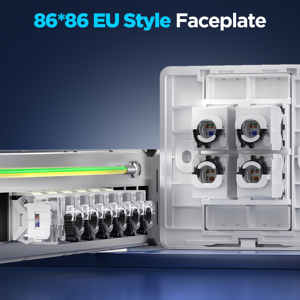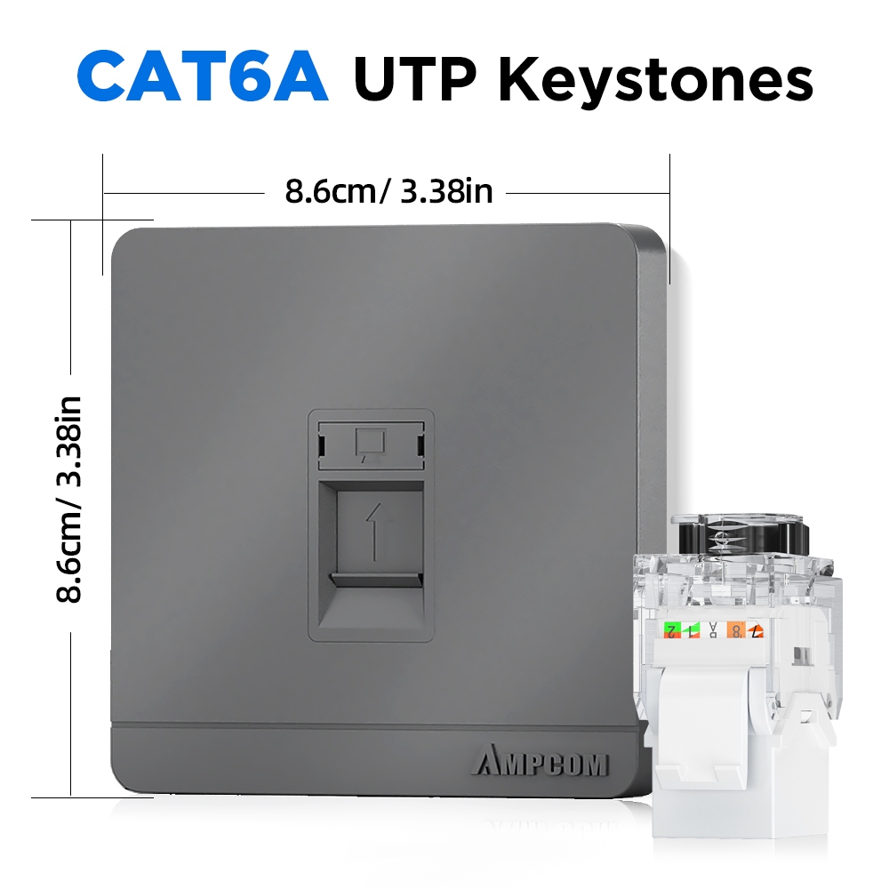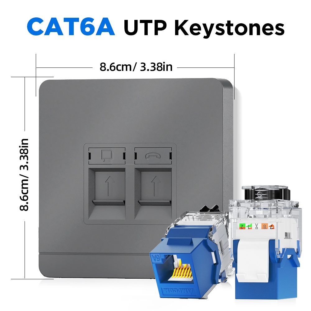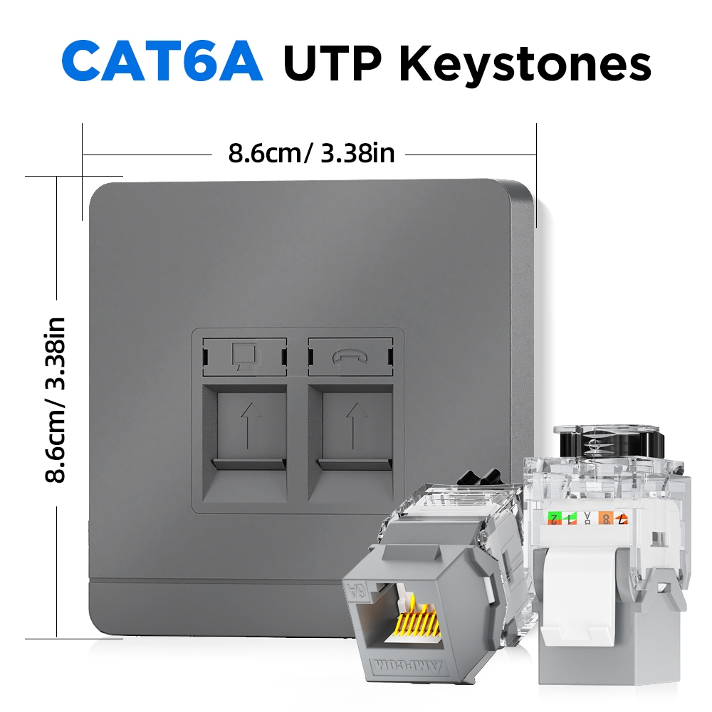 AMPCOM 86*86 Wall plate with CAT6A Keystone Jack Kit, Wall Faceplate With CAT6A 10Gbps UTP Ratchat Keystone Jack Tool Free, RJ45 Self-Locking Module With 86mm faceplate