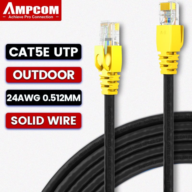 AMPCOM CAT6 Outdoor Ethernet Patch Cable, High-Speed UTP 0.57mm Oxygen-Free Copper Network Jumper RJ45, Custom Network Cable For Outdoor Projects