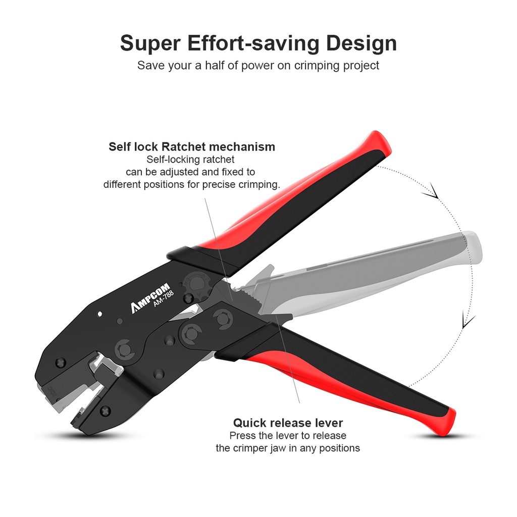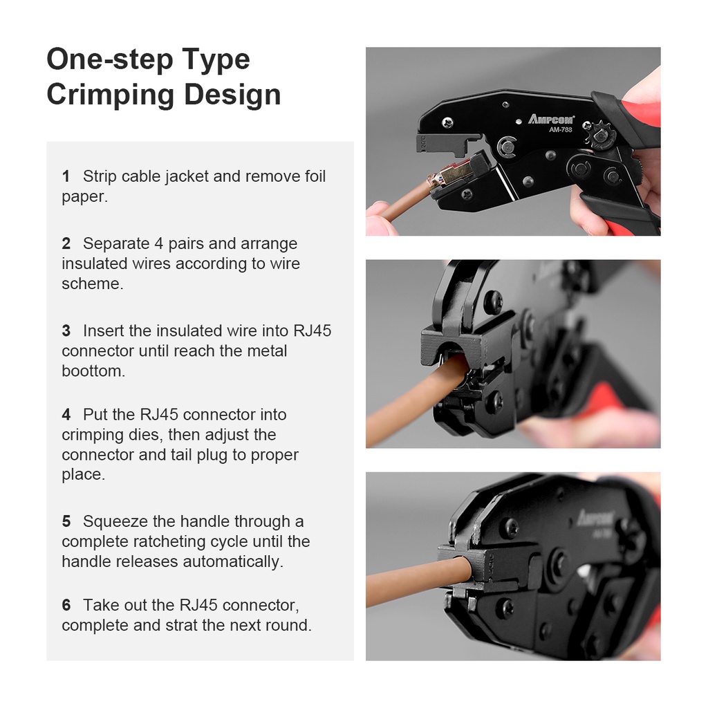 AMPCOM CAT7 Crimping tool, One-step RJ45 Ratcheting Crimper Network Tool for CAT6A, CAT7 Shielded Connector with 2pcs Replaceable crimping dies