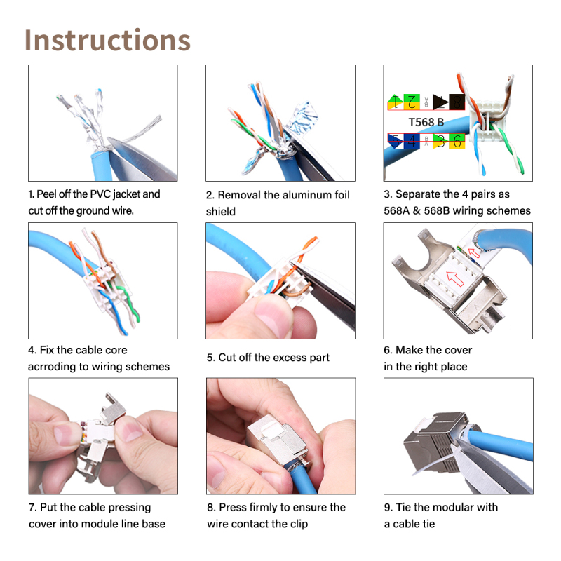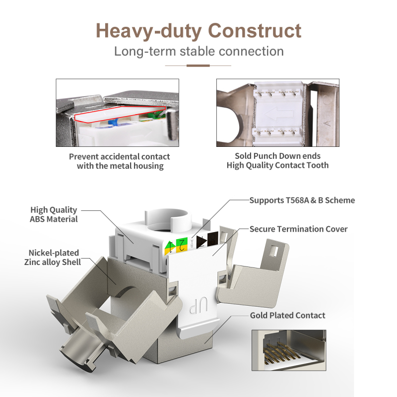 AMPCOM CAT7 Keystone Jack, Fluke DSX 8000 Passed AMPCOM Shielded Zinc-Alloy RJ45 Tool-Free Keystone Connector