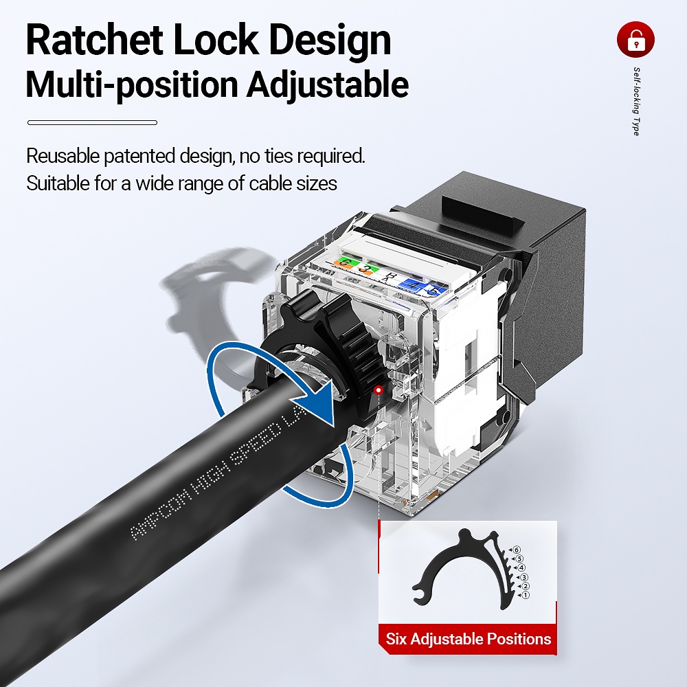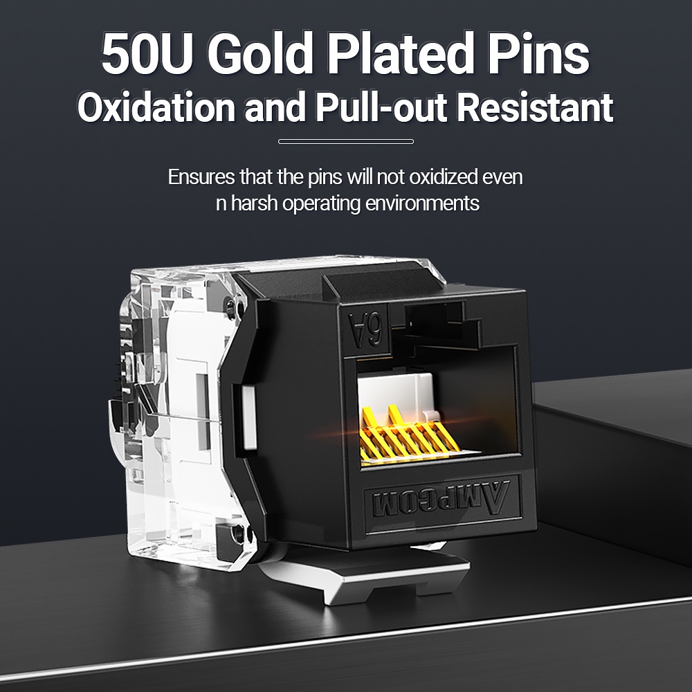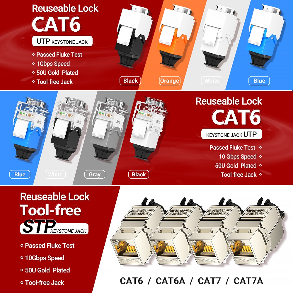 AMPCOM CAT7A CAT7 CAT6A CAT6 RJ45 Keystone Jack, Ratchet Lock STP Toolless Modular Coupler Zinc Alloy Module Jacks 10Gbps