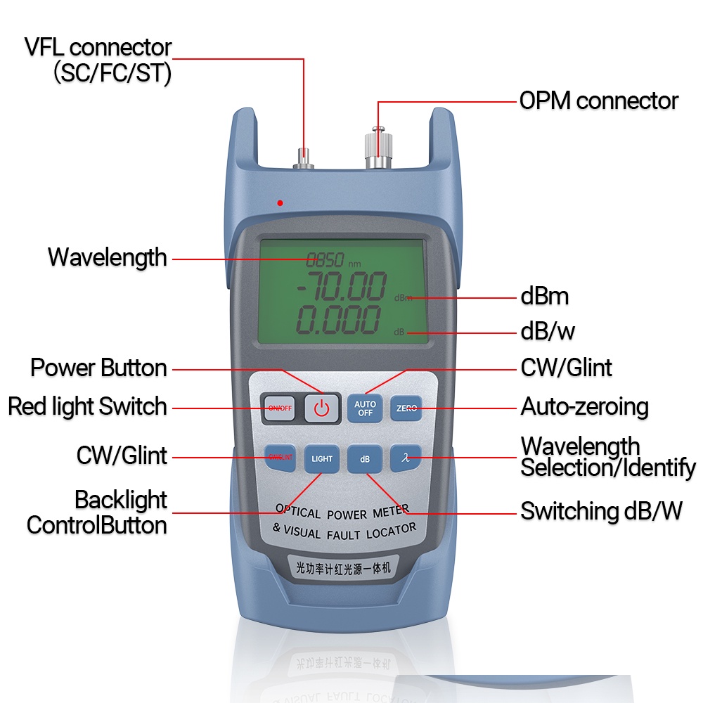 AMPCOM Fiber Optical Power Meter With Visual Fault Locator Fiber Tester SC FC ST Connector Optic Test Equipment (-70 -10dBm)