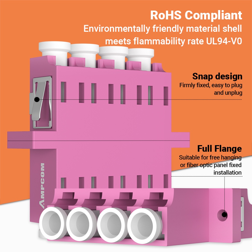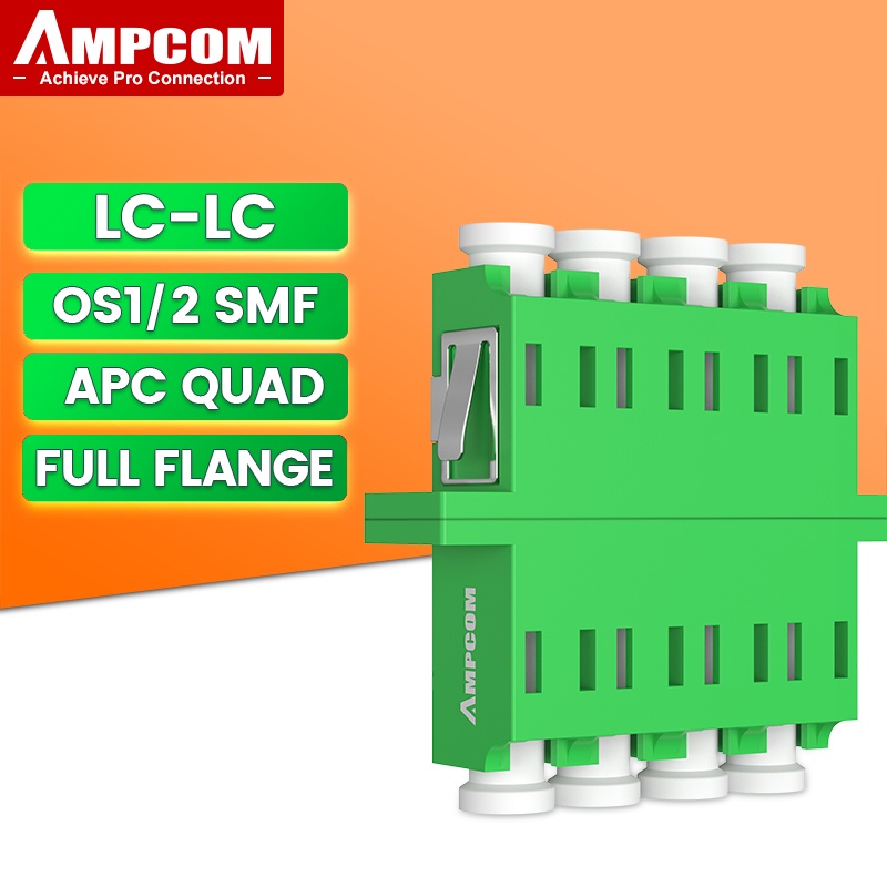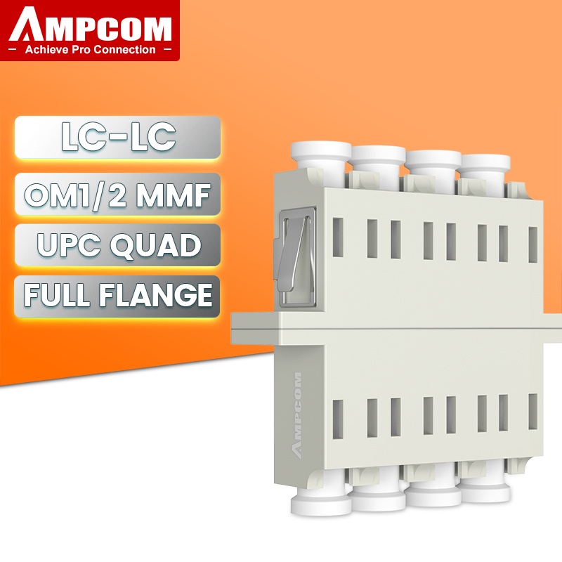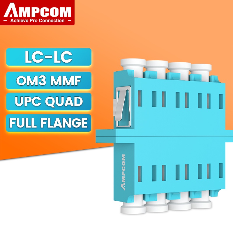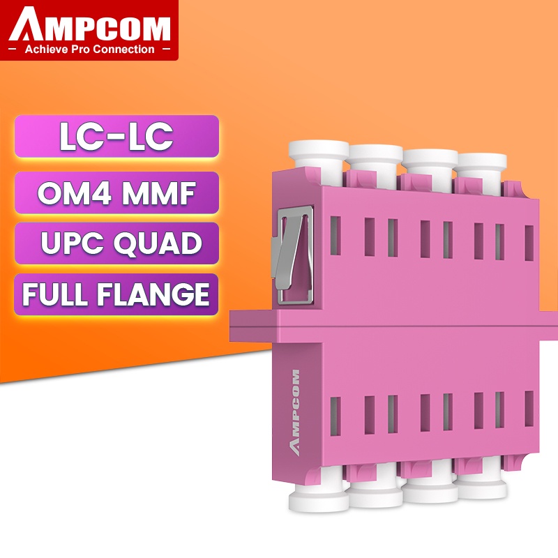AMPCOM LC To LC Quad Fiber Optical Coupler OS1 OS2 OM1 OM2 OM3 OM4 Full Flange Optic Adapter SMF MMF Female to Female APC UPC