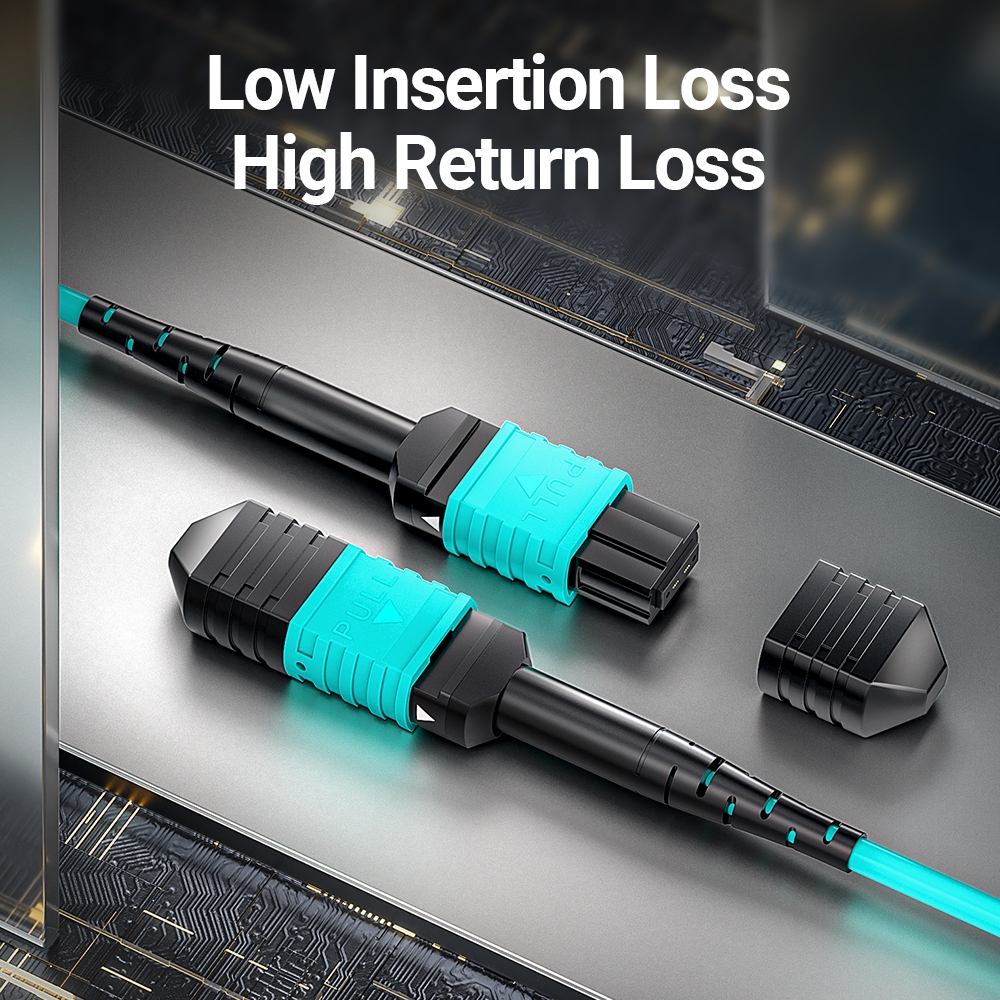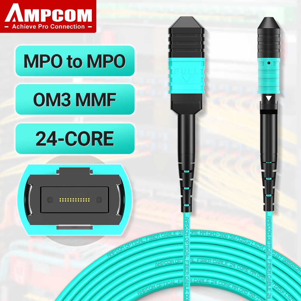 AMPCOM MPO to MPO Type B Fiber Patch Cord OM3 Multimode 8/12/24 Cores Trunk Cable for 10G QSFP+ 100G QSFP28 Transceivers, Lengths From 1M To 10M