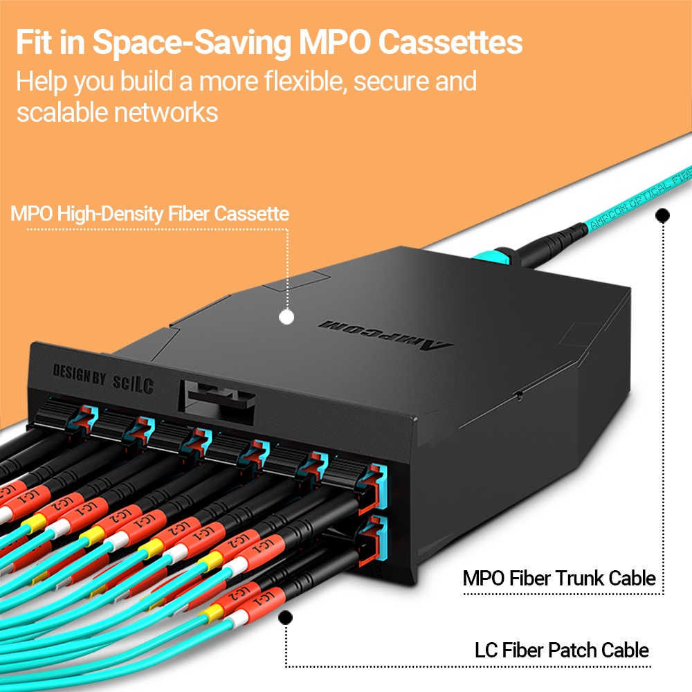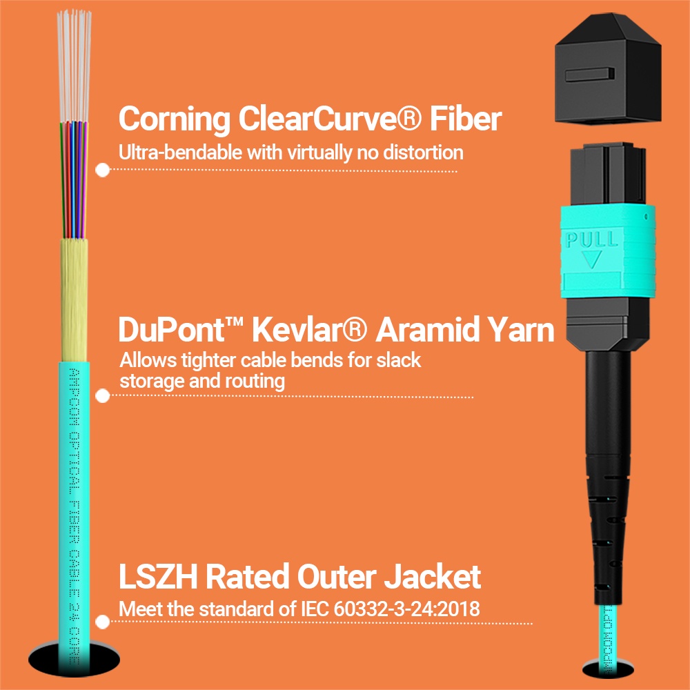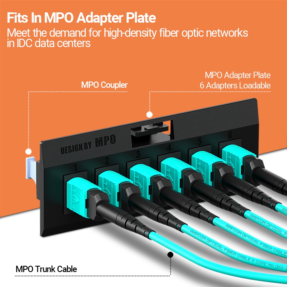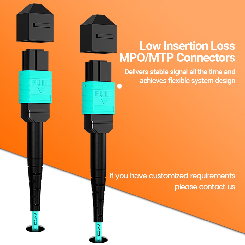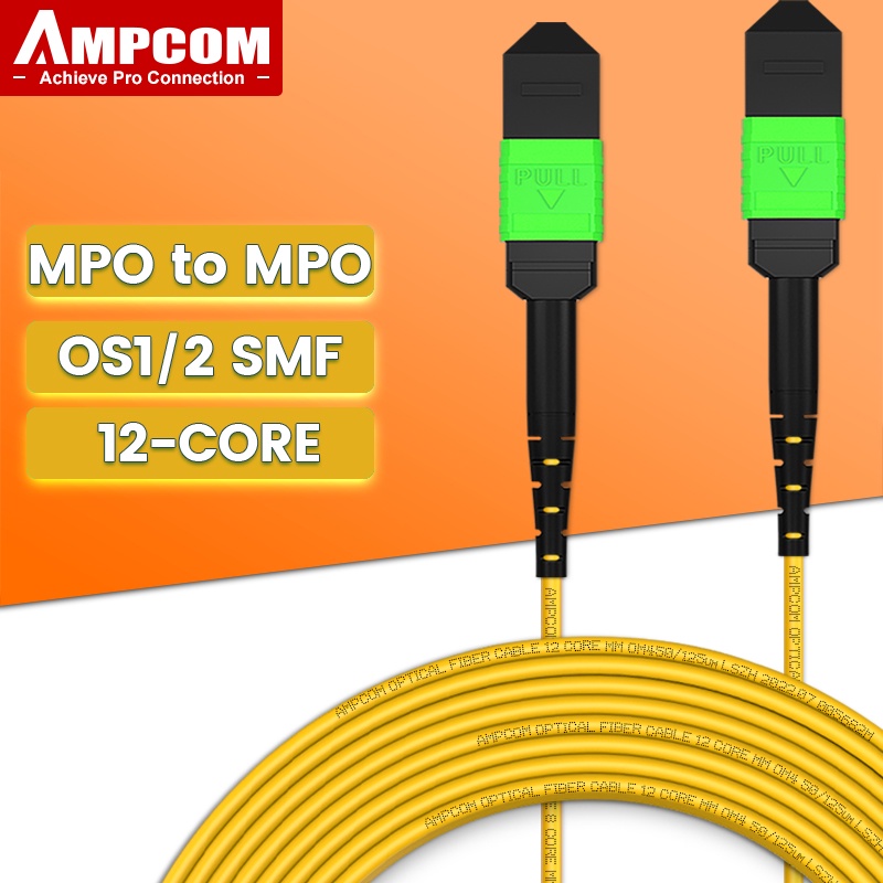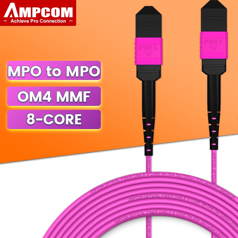 AMPCOM MPO To MPO Type B Fiber Patch Cord OS1/2 OM3 OM4 OM5 8/12/24 Cores Trunk Cable For 10G QSFP+ 100G QSFP28 Transceivers