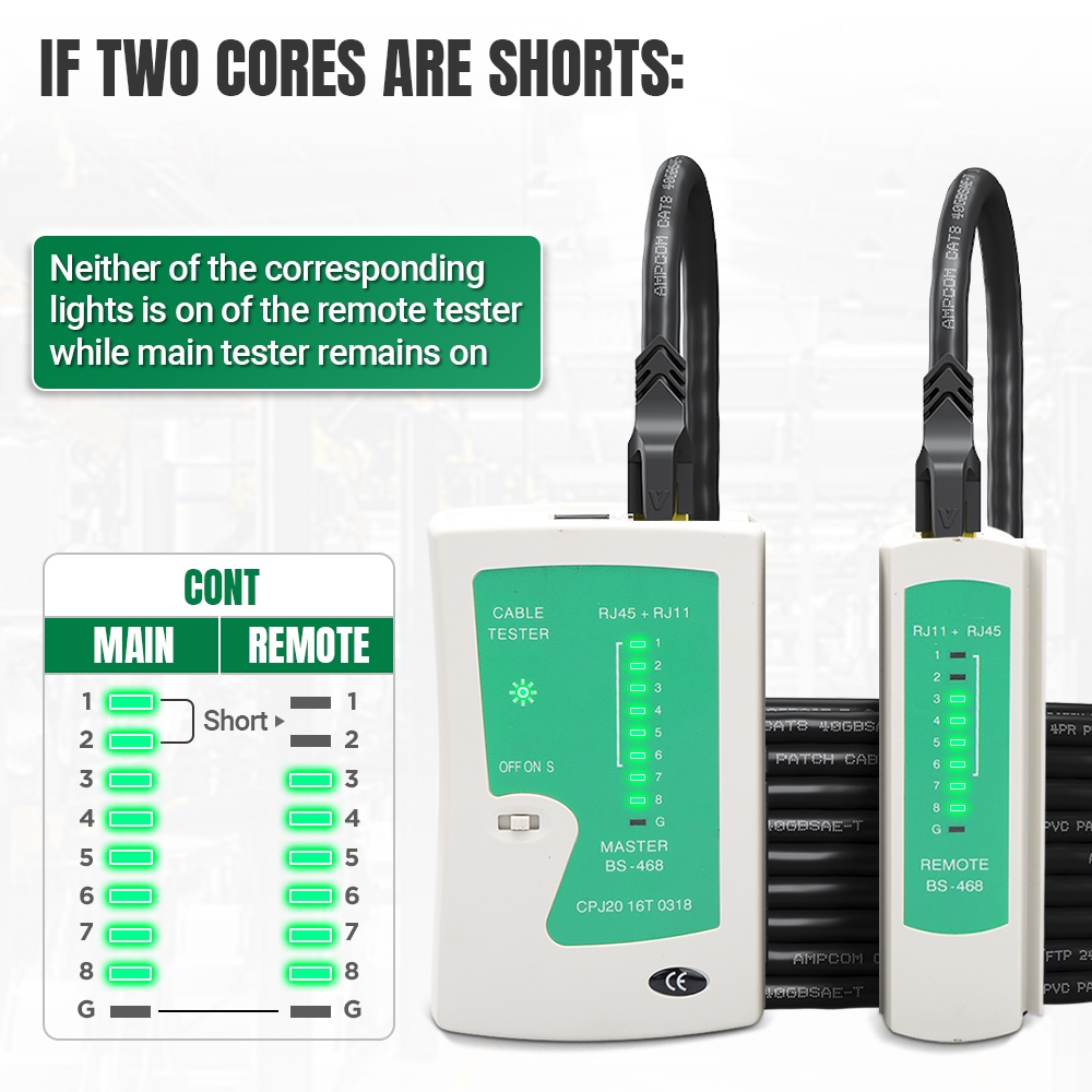 AMPCOM Network Cable Tester RJ45 Ethernet Cable Tester Lan Test Tool For CAT5 CAT6 CAT7 8P 6P LAN Cable And RJ11 Telephone Cable