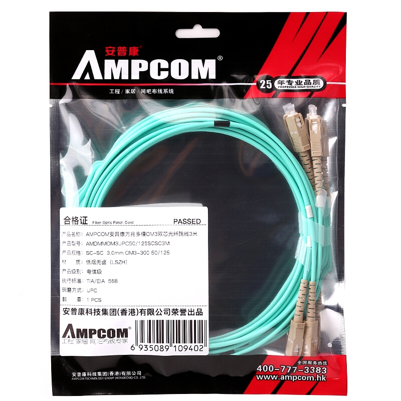 AMPCOM OM3 Fiber Optic Patch Cable, (SC To LC , LC To LC, SC To SC), 10G Gigabit Fiber Optic Cables with Multimode OM3 Duplex 50/125 LSZH