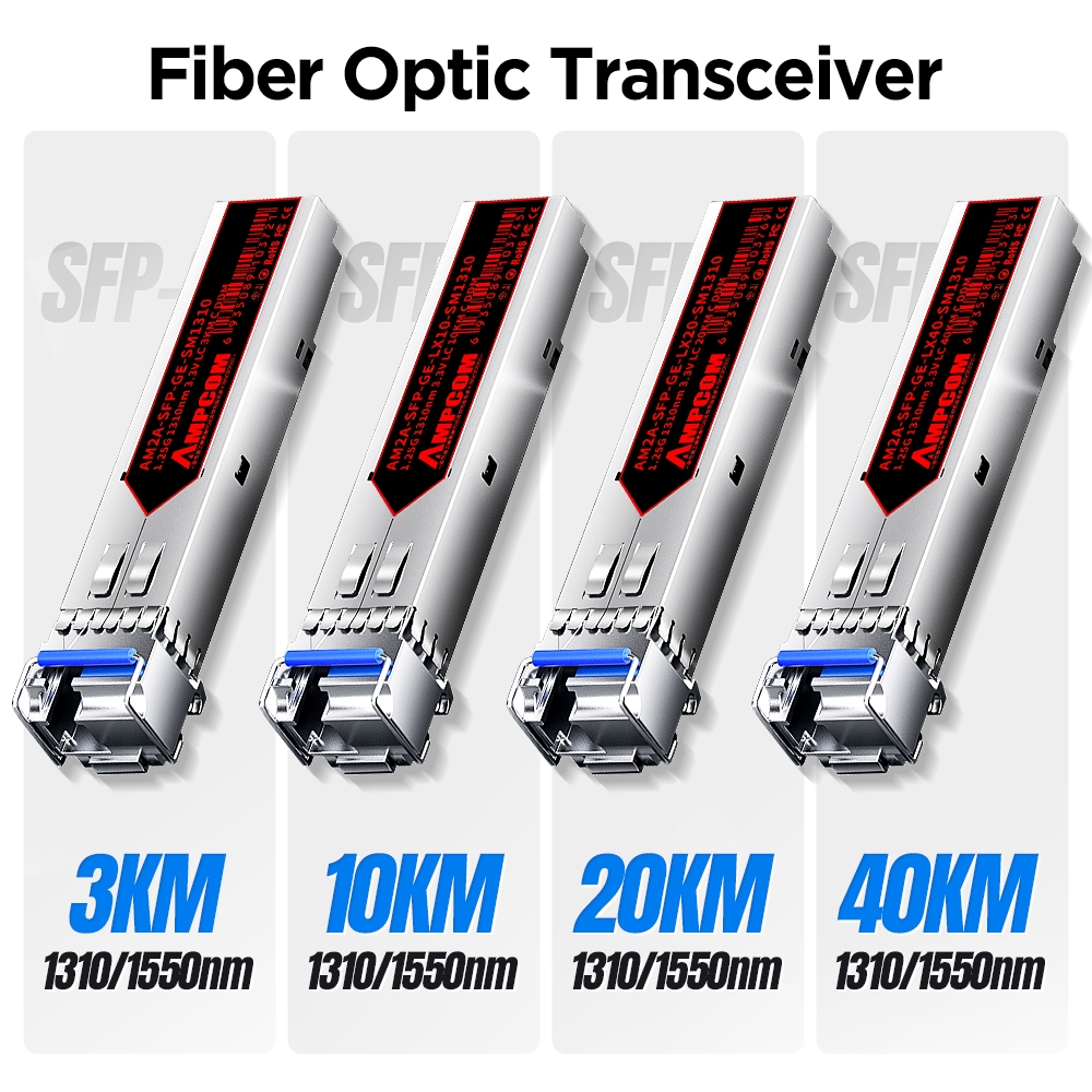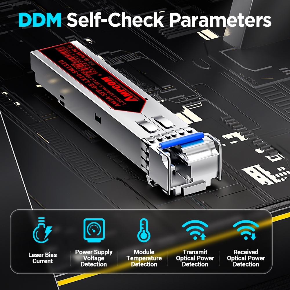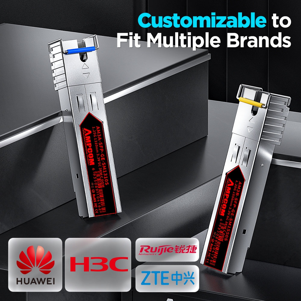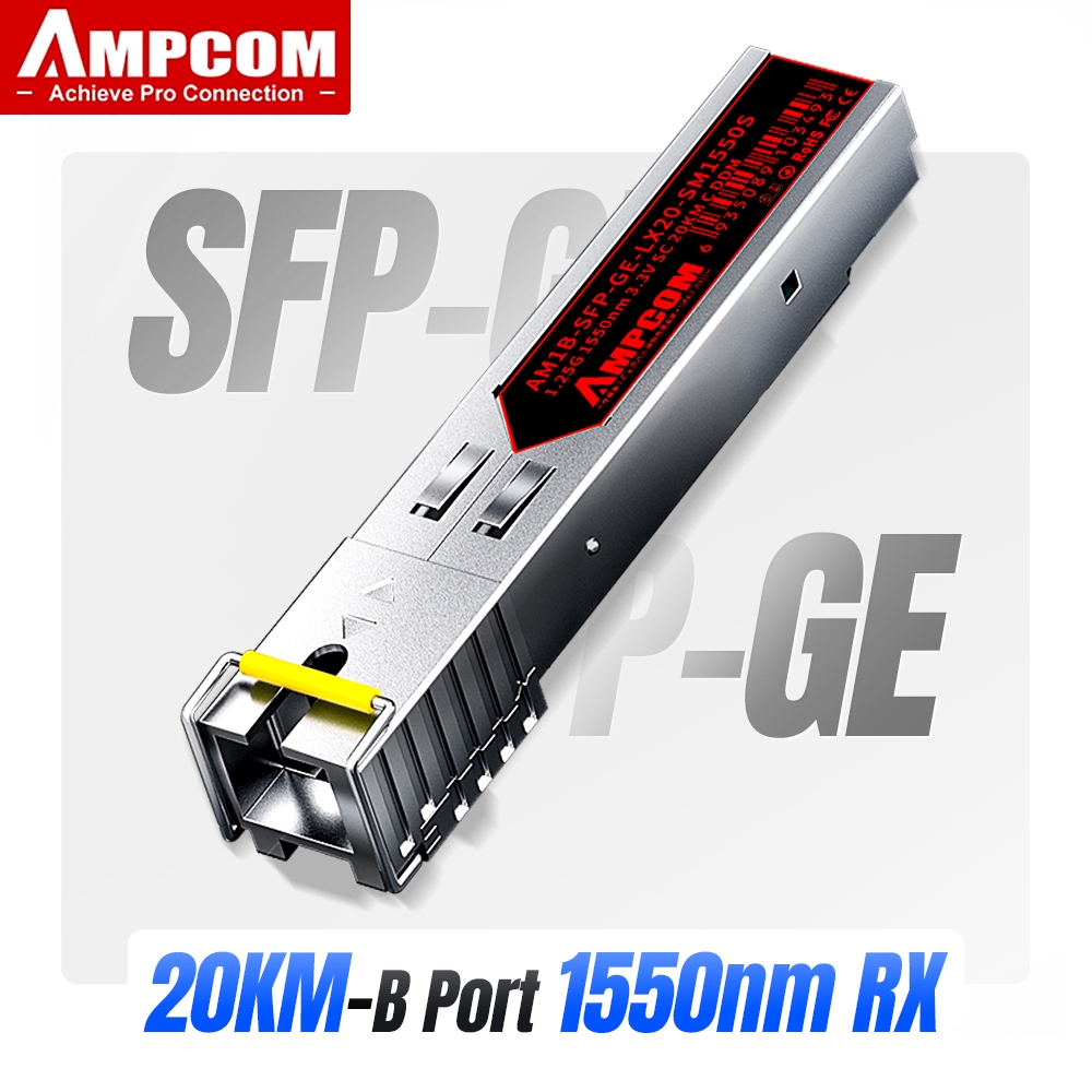 AMPCOM SC SFP BIDI WDM 1.25G 1310/1550nm 1000Base-BX Fiber Optic Transceiver Modules Single Mode DDM 3KM/10KM/20KM/40KM