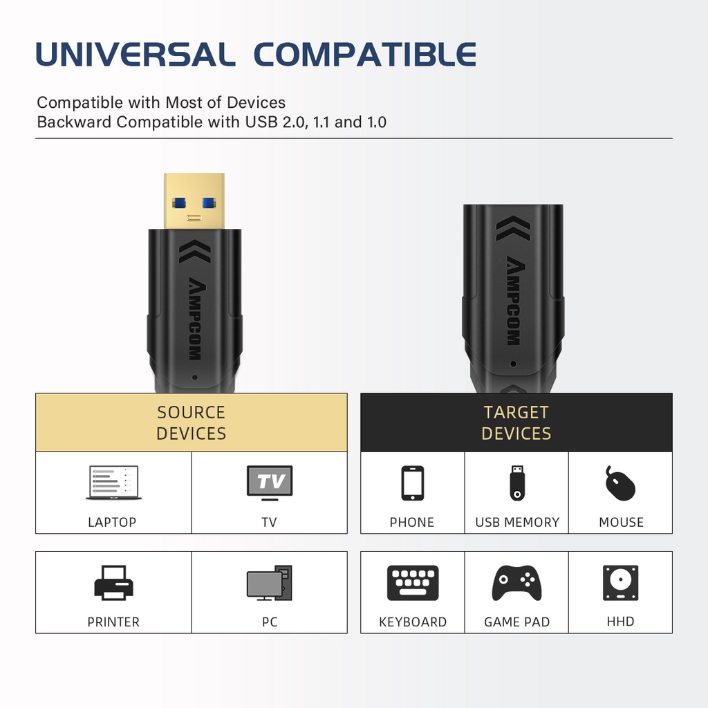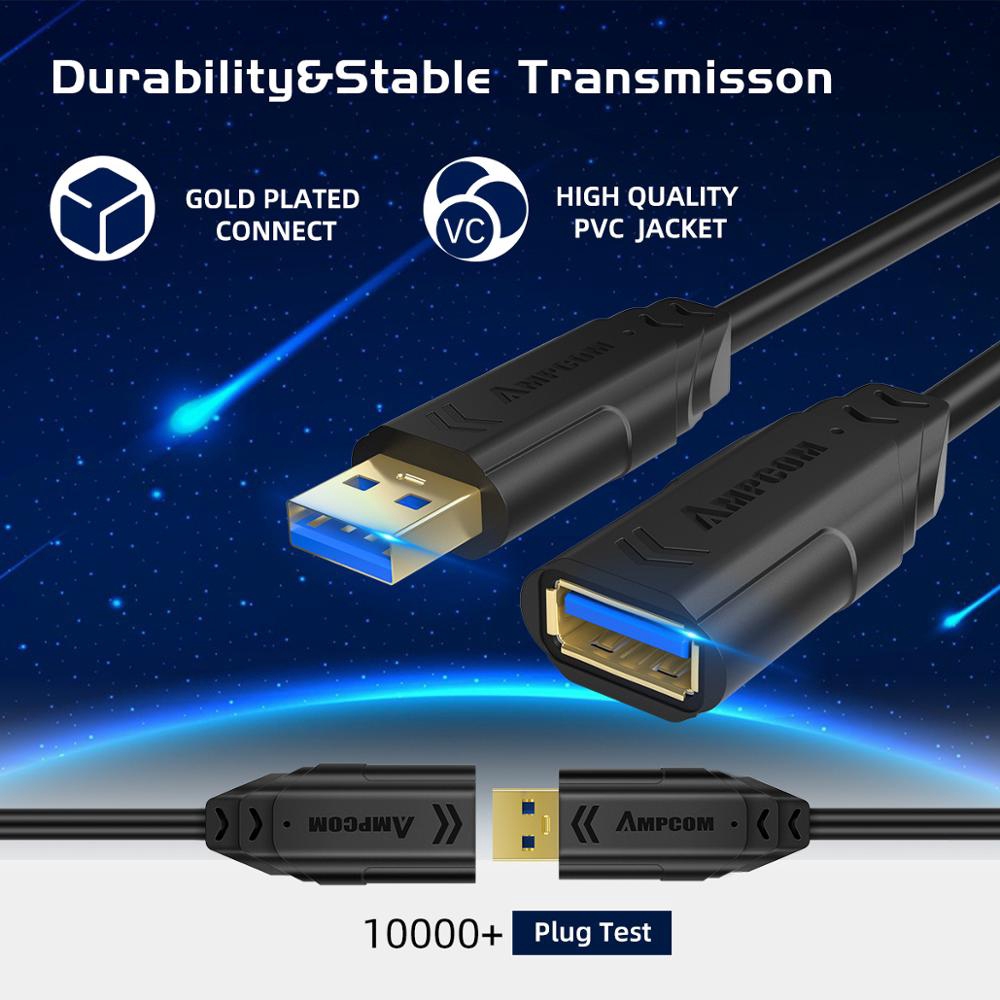 AMPCOM USB Extension Cable USB 3.0 Cable usb Extender for USB Keyboard,Mouse, A-Male to A-Female Adapter Cord