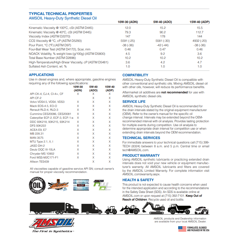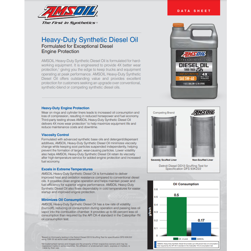 AMSOIL 5W-40 Heavy-Duty 100% Synthetic Diesel Engine Oil Gallon (4 Quarts / 3.78L)