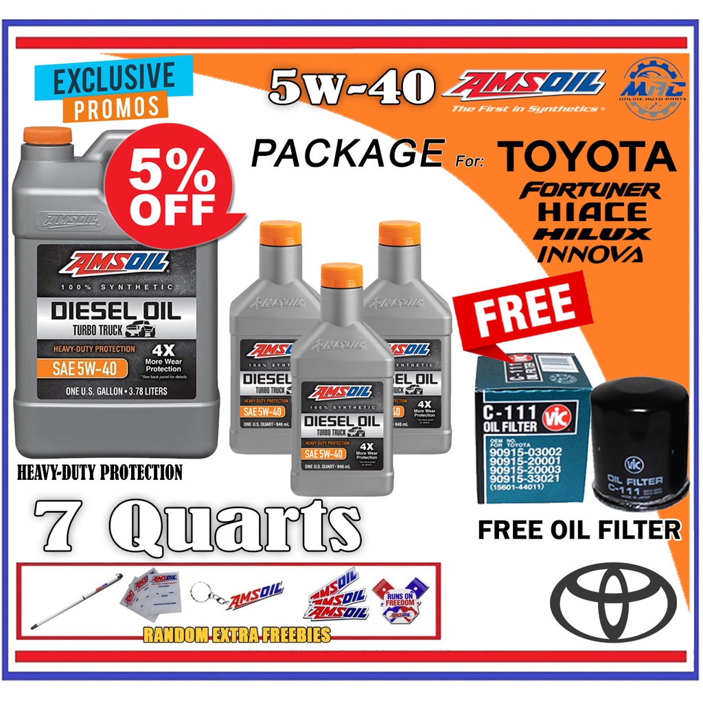 AMSOIL Heavy Duty Turbo Truck 5w-40 Diesel Oil 7 Quarts plus oil filter Package For TOYOTA DIESEL