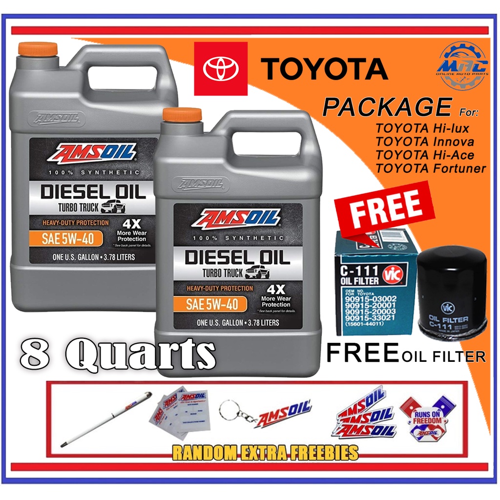 AMSOIL Heavy Duty Turbo Truck 5w-40 Diesel Oil 8 Quarts plus oil filter Package For TOYOTA DIESEL