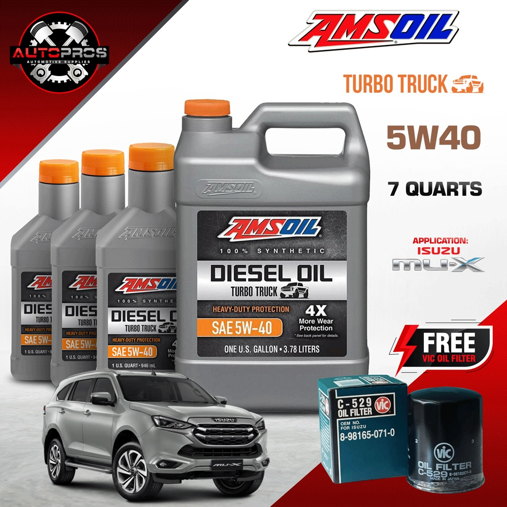 AMSOIL TURBO TRUCK 5W40 Diesel Engine Oil 7 Quarts with VIC Oil Filter for Isuzu MUX 4JJ1 4JK1