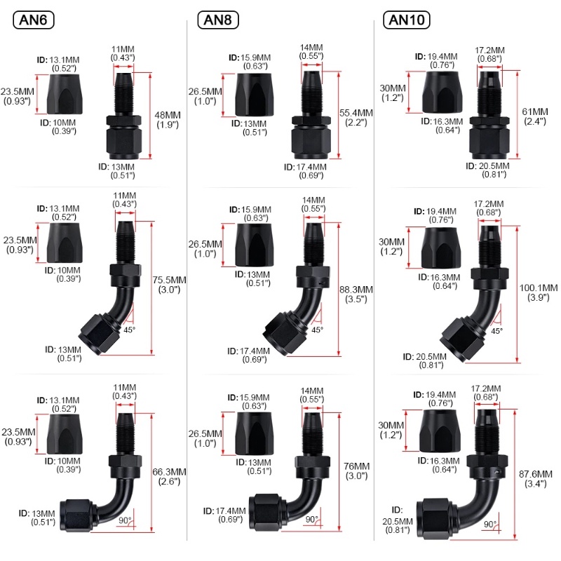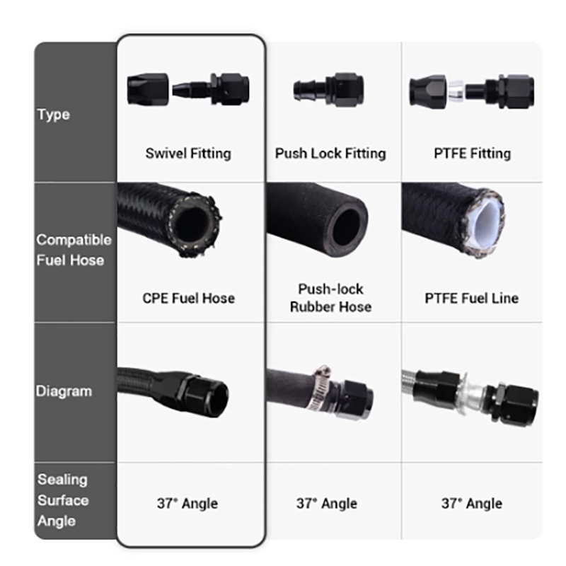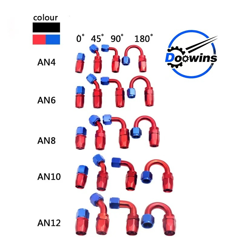 AN4 AN6 AN8 AN10 Oil Fuel Hose Fittings Aluminum Swivel Oil Cooler Fitting 0/45/90/180 Degree Hose End Adaptor Engine Oil Braided Hose Fitting