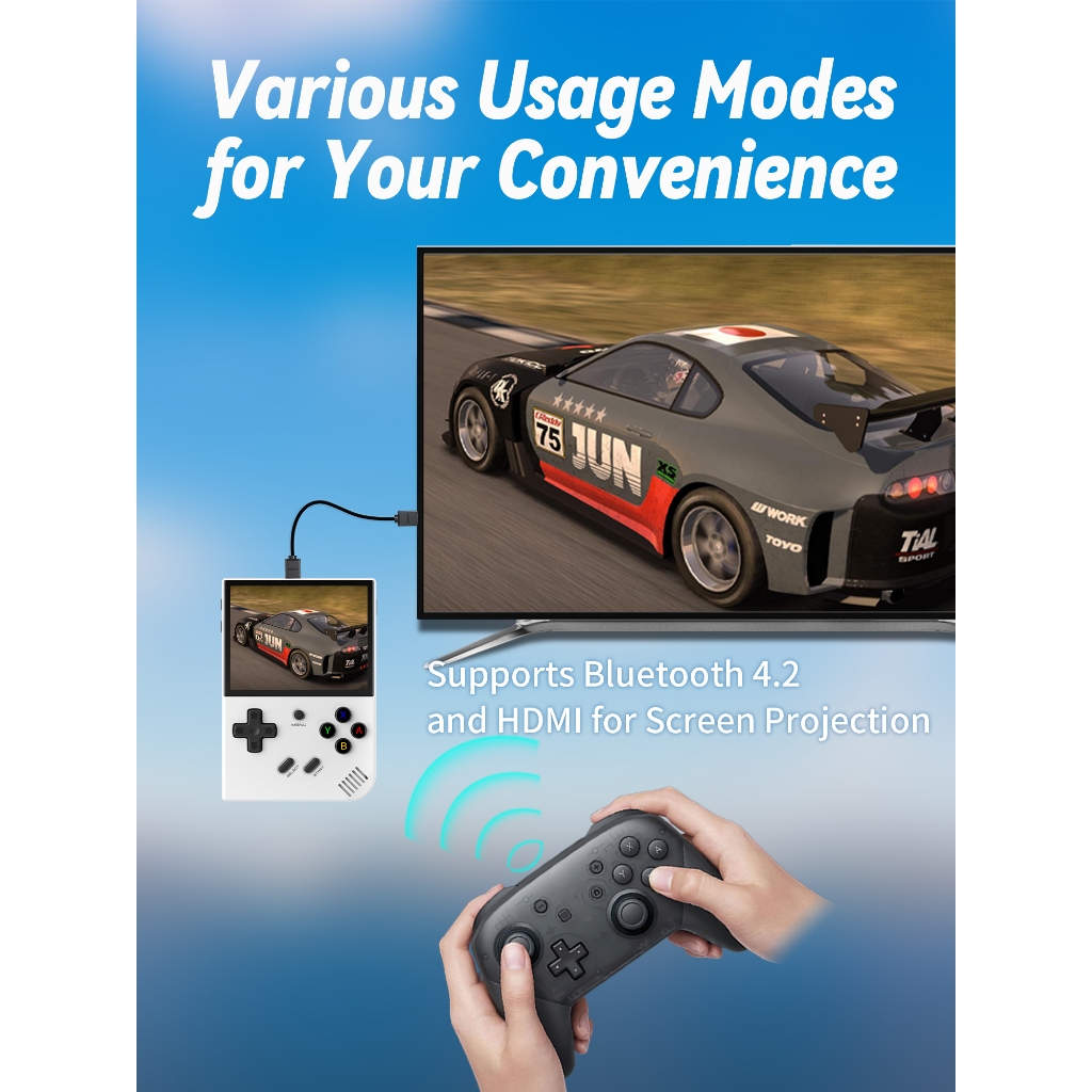 ANBERNIC RG35XX PLUS Nostalgic game console 3.5 inch screen Linux system 64G/128G dual card slot supports psp, ps1 Support Bluetooth controller connection Support Bluetooth handle