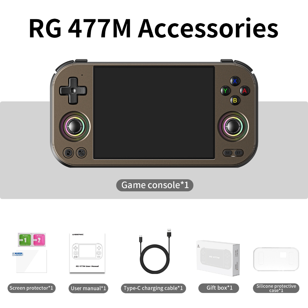 ANBERNIC RG477M Aluminum Alloy Android Game Console 4.7-inch Android 14 Dimensity 8300 Processor Supports dual-screen display for NDS and 3DS games Free silicone protective case
