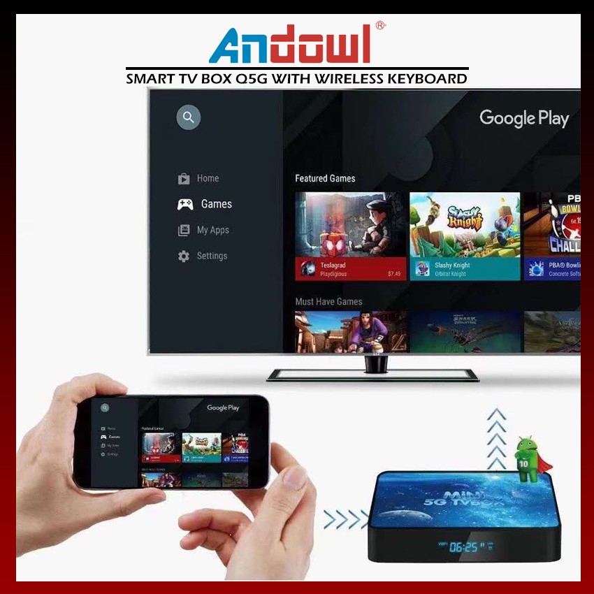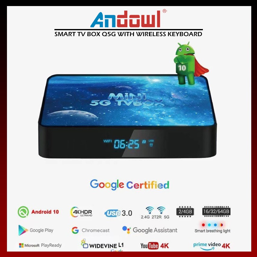 ANDOWL Q5G Mini WiFi Box 4G+64G 5G 6K Ultra HD Android Version Smart TV Box With Keyboard