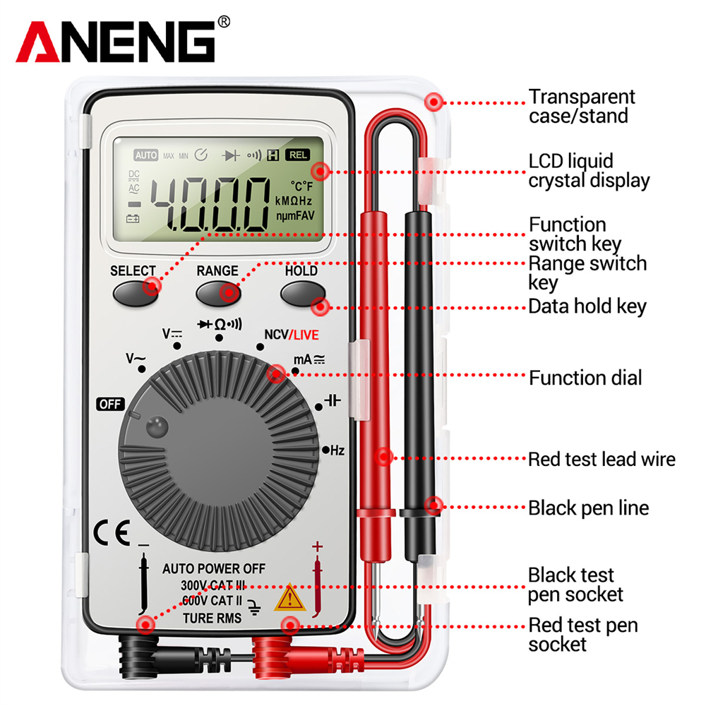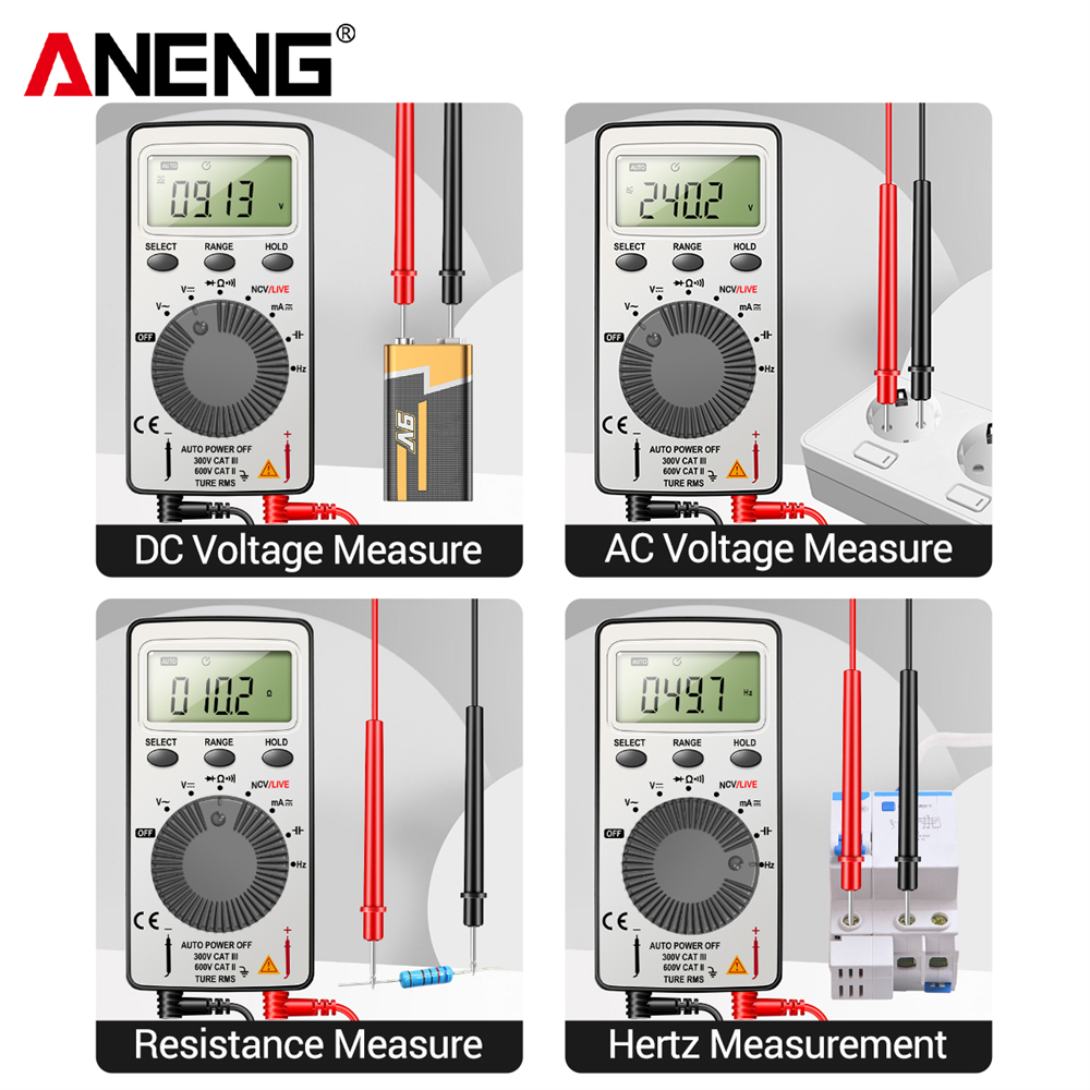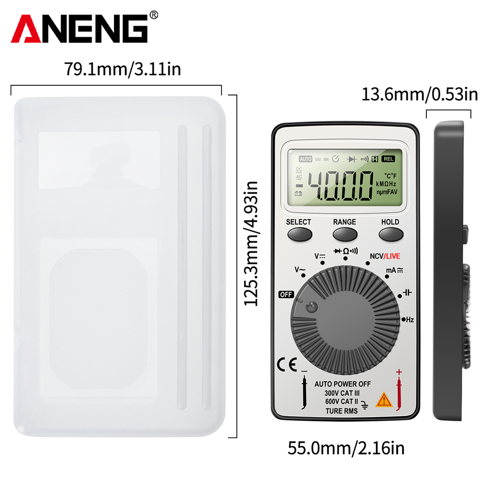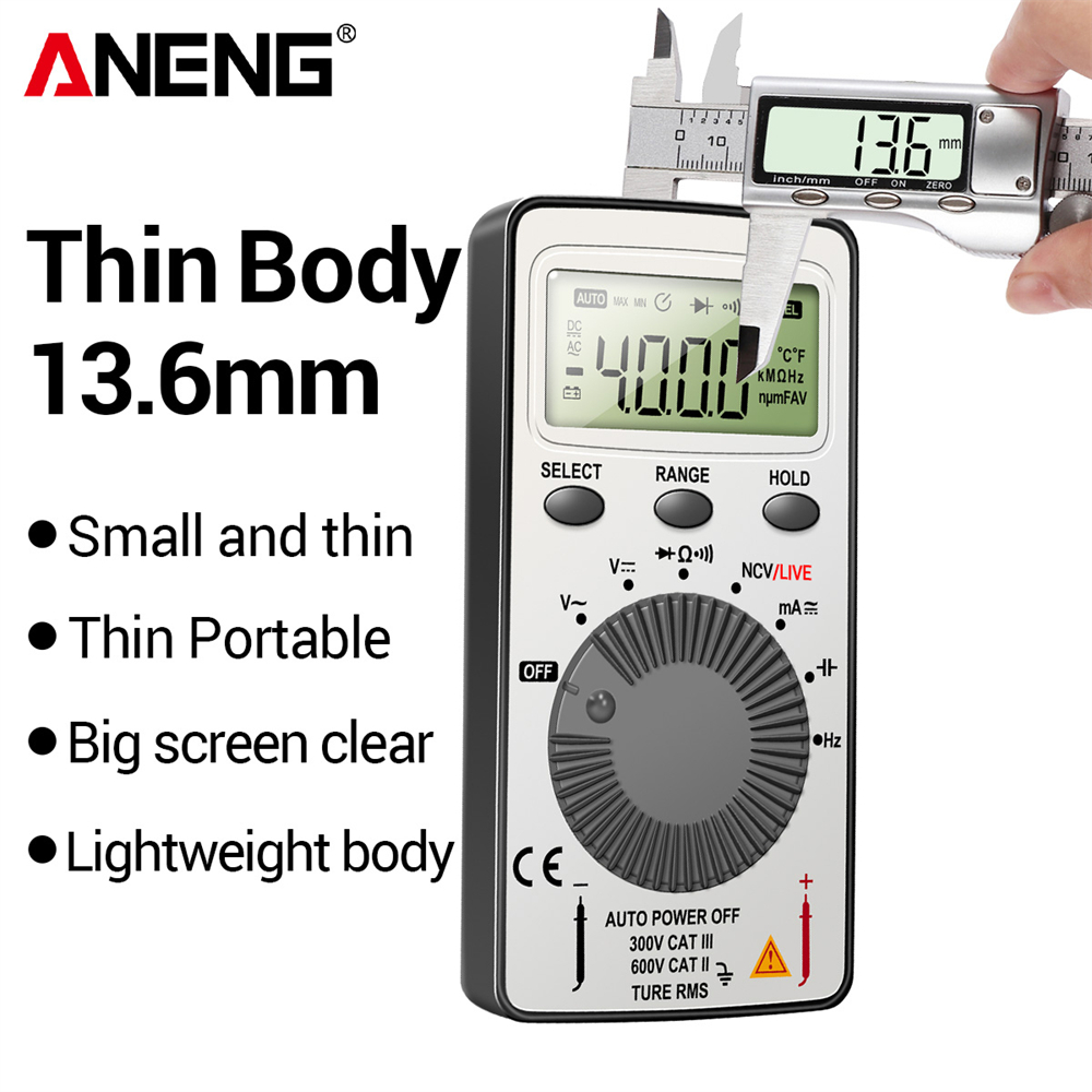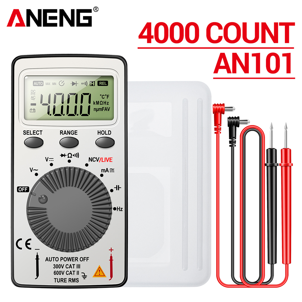 ANENG AN101 Mini Digital Multimeter - 1999 T-RMS AC/DC Tester with NCV, Capacitance, and Voltmeter Functions