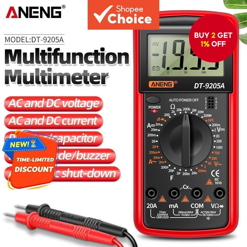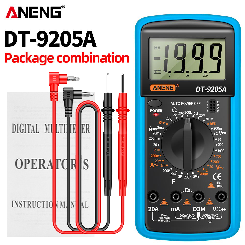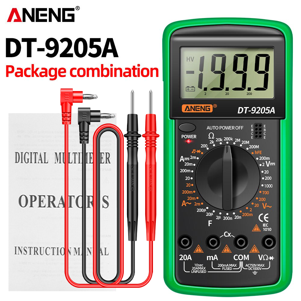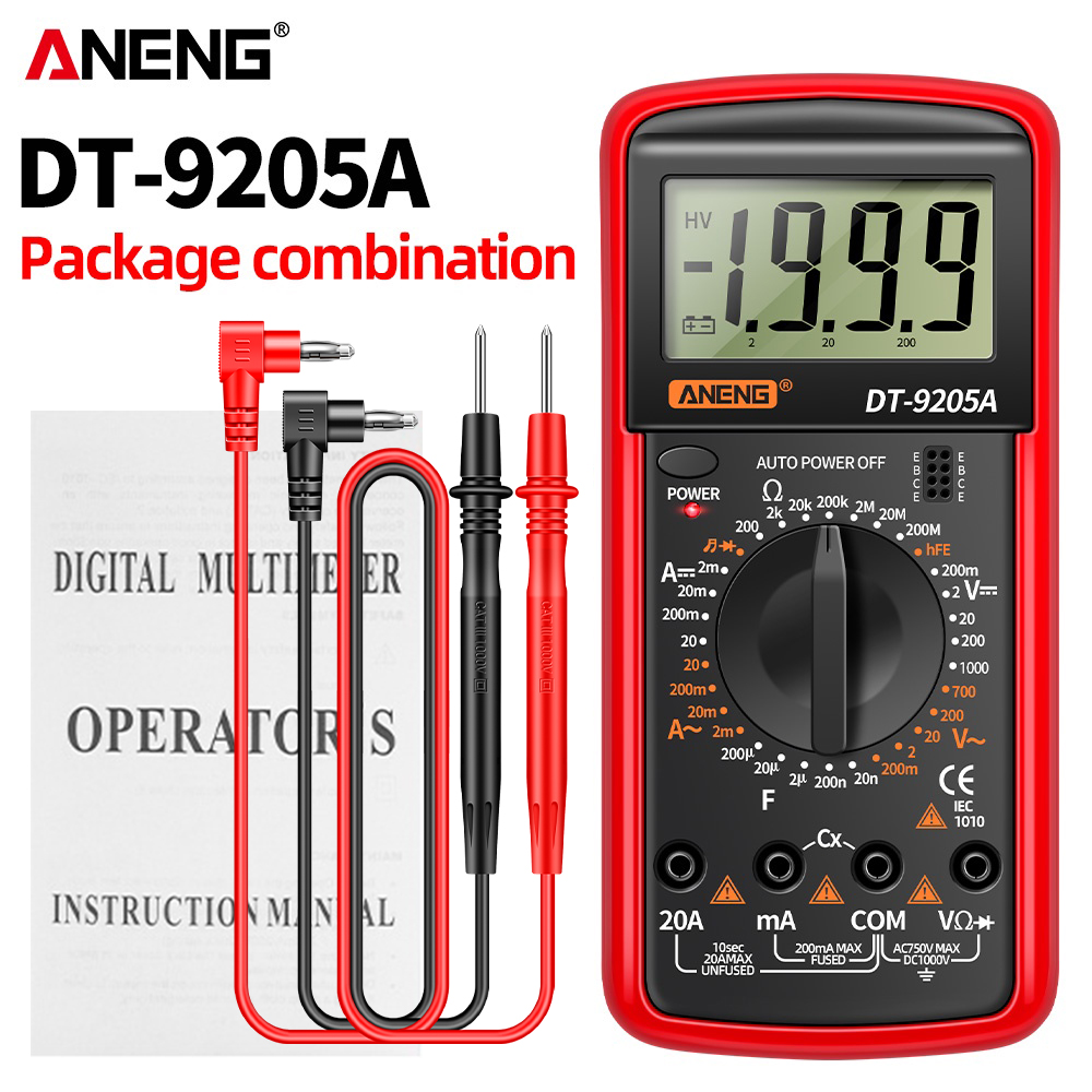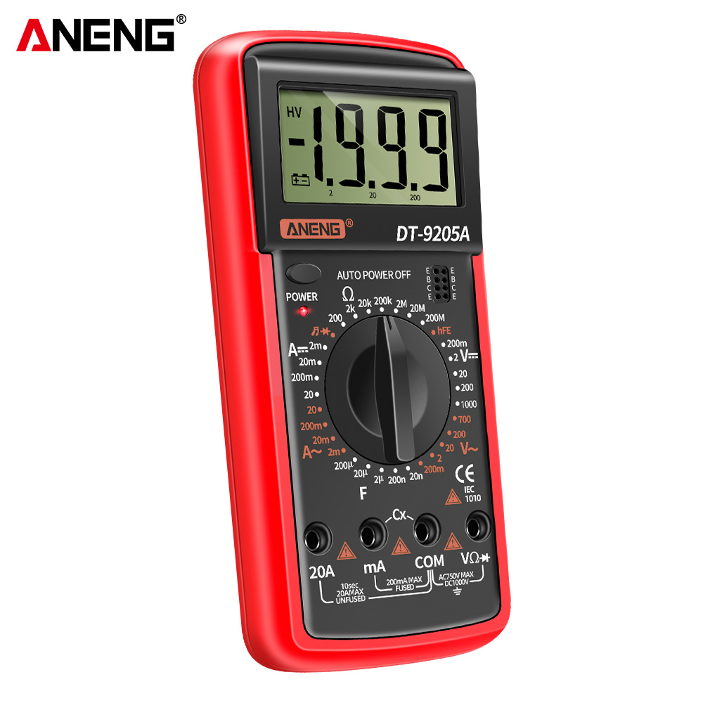 ANENG DT9205A Digital Multimeter with AC/DC Transistor Testing, Auto Range, and NCV Functionality