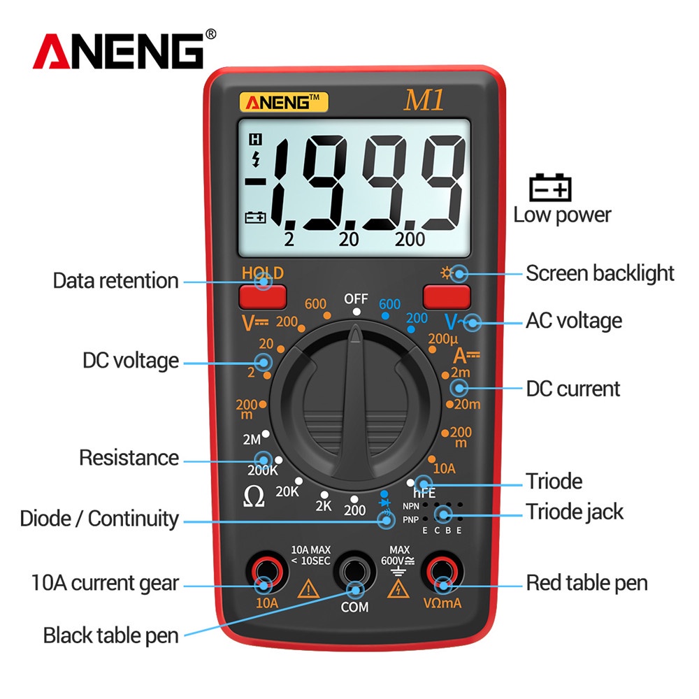 Aneng M1 Digital Multimeter Voltage/Current Tester Screen Bright Resistance Meter 600V 10A Others