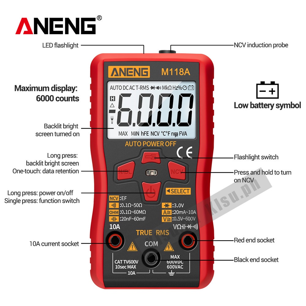 ANENG M118A Digital Multimeter TRMS 6000 Counting Multimeter Tester, Auto Ranging Accurate Measureme