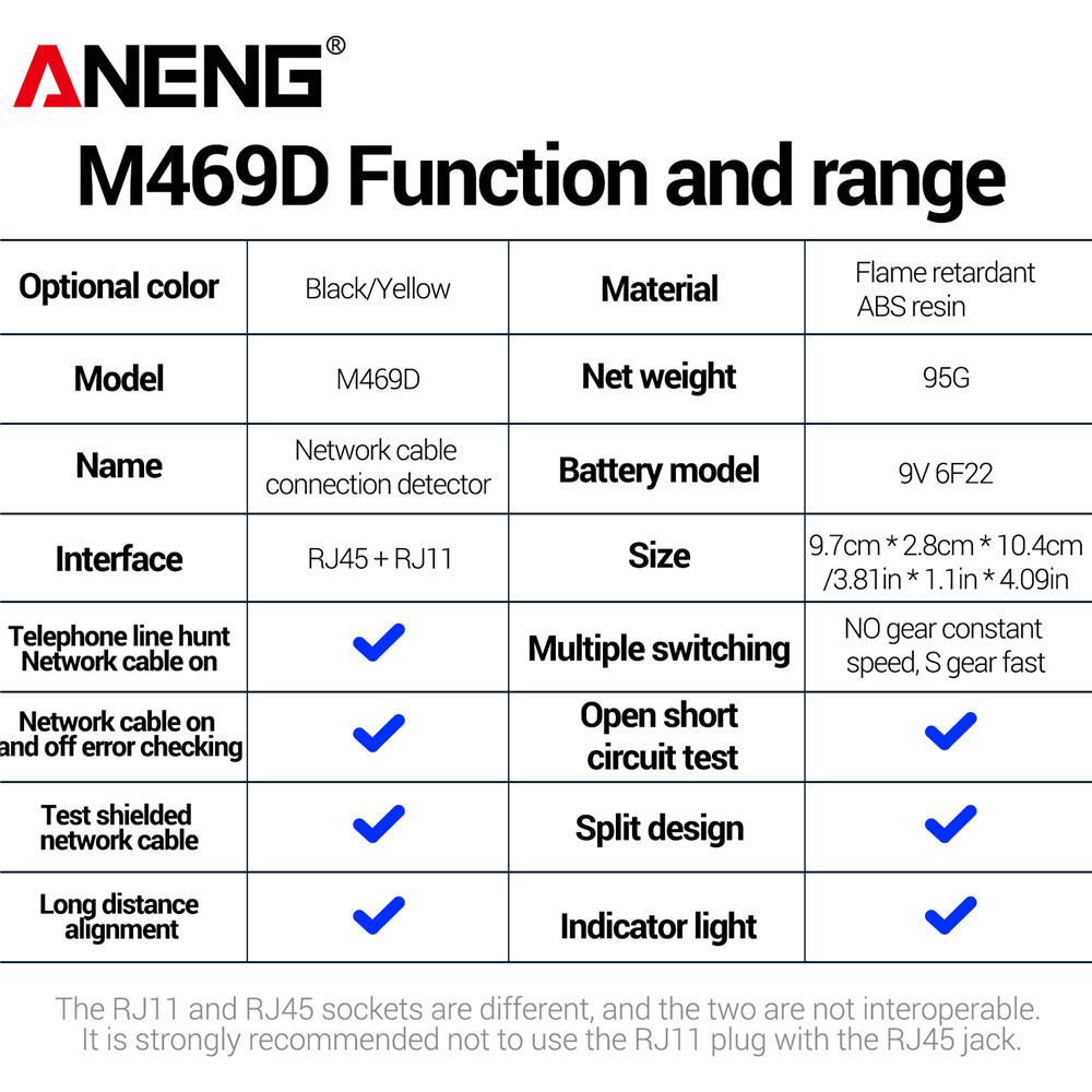 ANENG M469D Network Analyzer Tester Cable lan RJ45 RJ11 RJ12 CAT5 UTP LAN Cable Tester Networking Tool Network Repair Test Tools