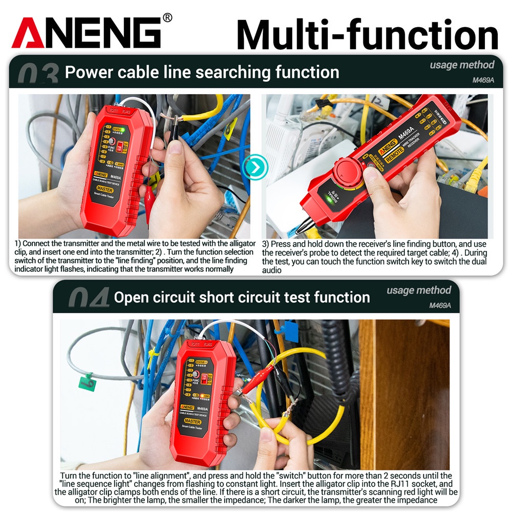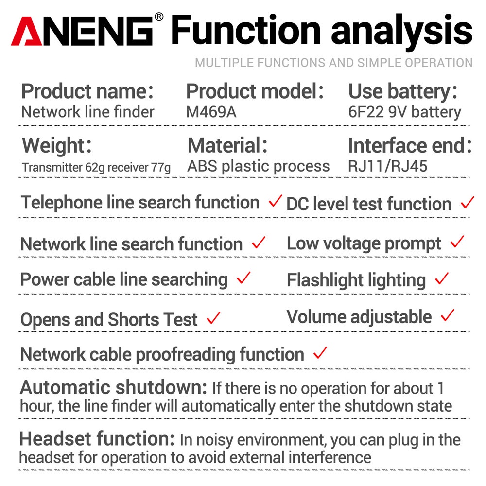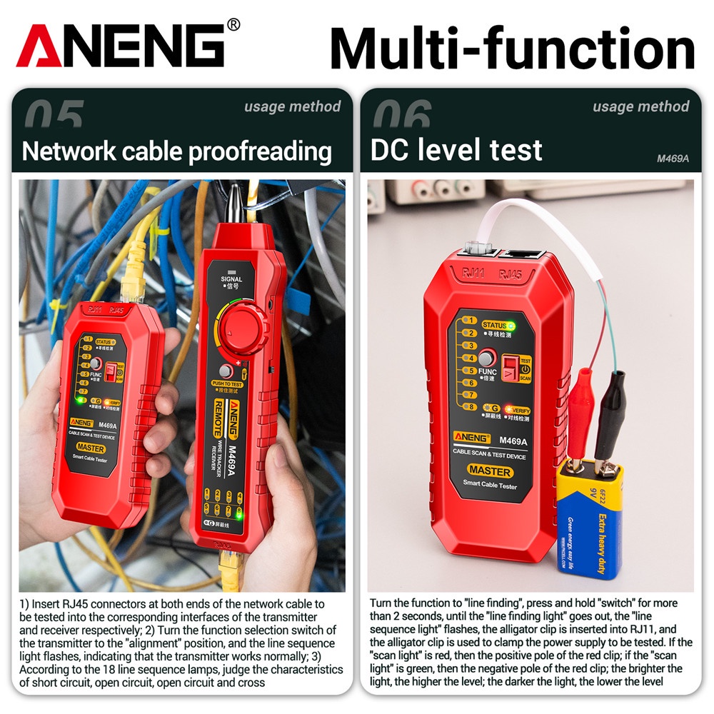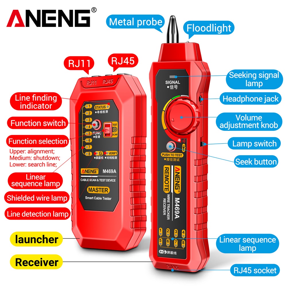 Aneng Network Cable Tracker M469A Networking Analyzer Rj45 Rj11 Telephone Line Wire Detector Measure Cables Tool Others