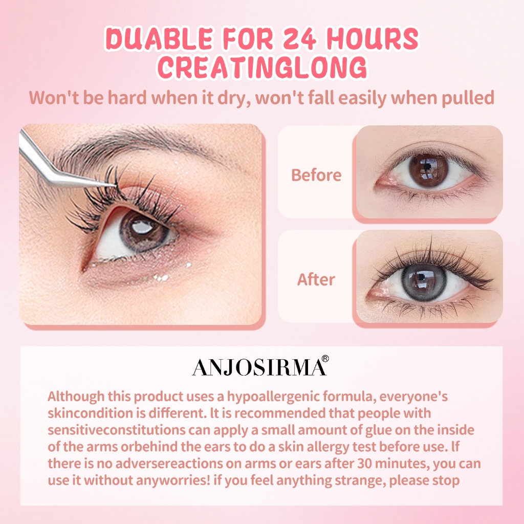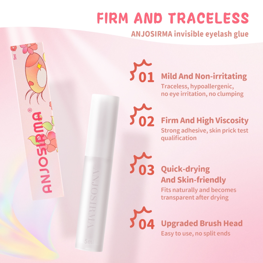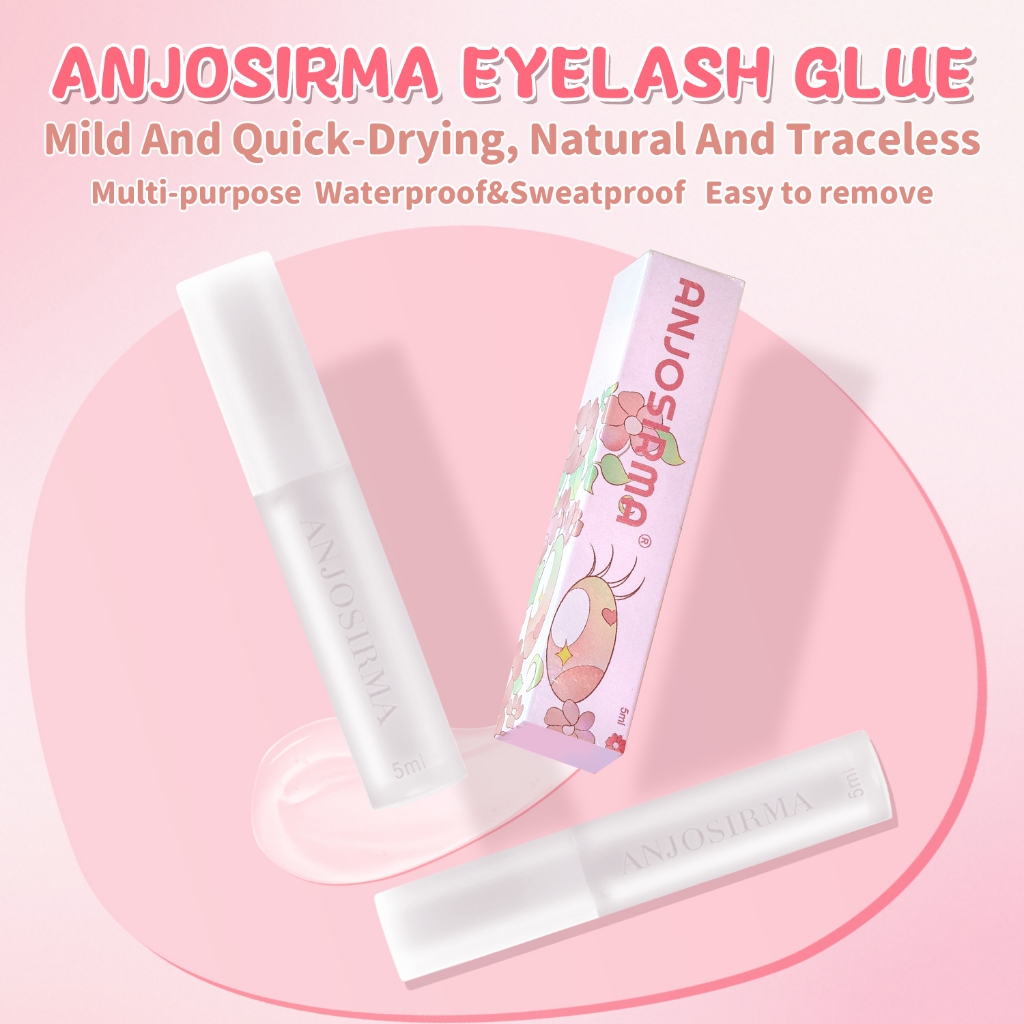 ANJOSIRMA 5ml Lashes Glue Super Strong Hold Lash Glue Long Lasting 24 Hours Suitable for Sensitive Eyes With Remover For All Skin Types