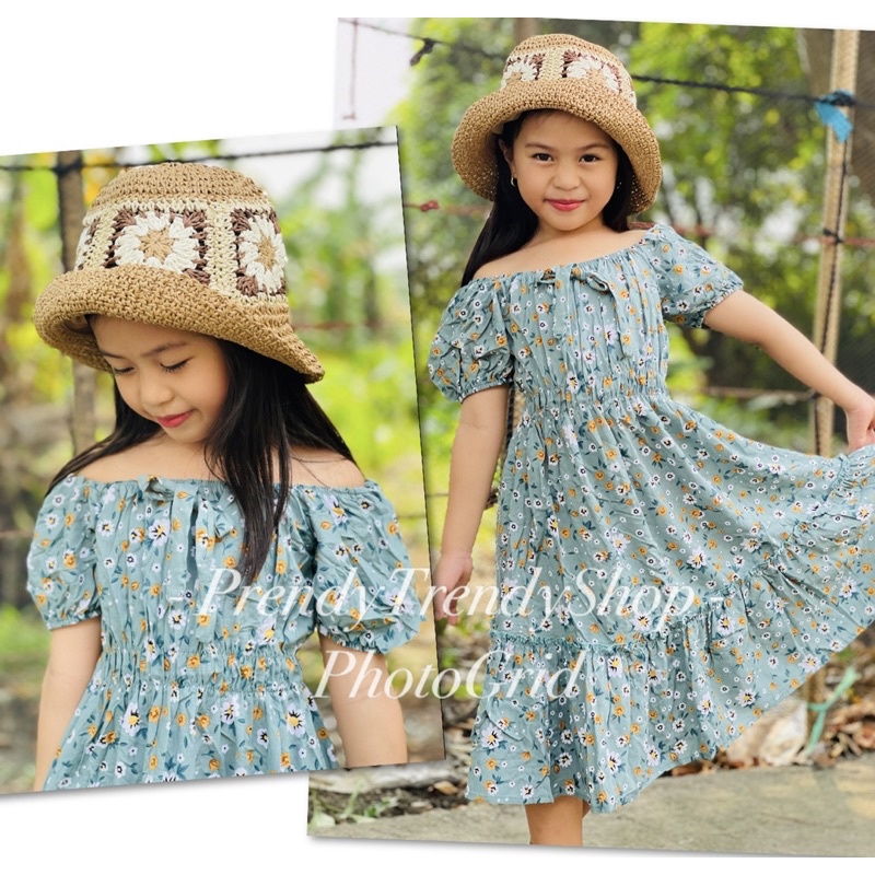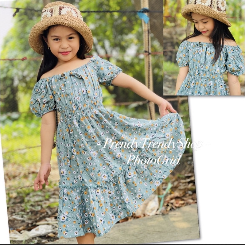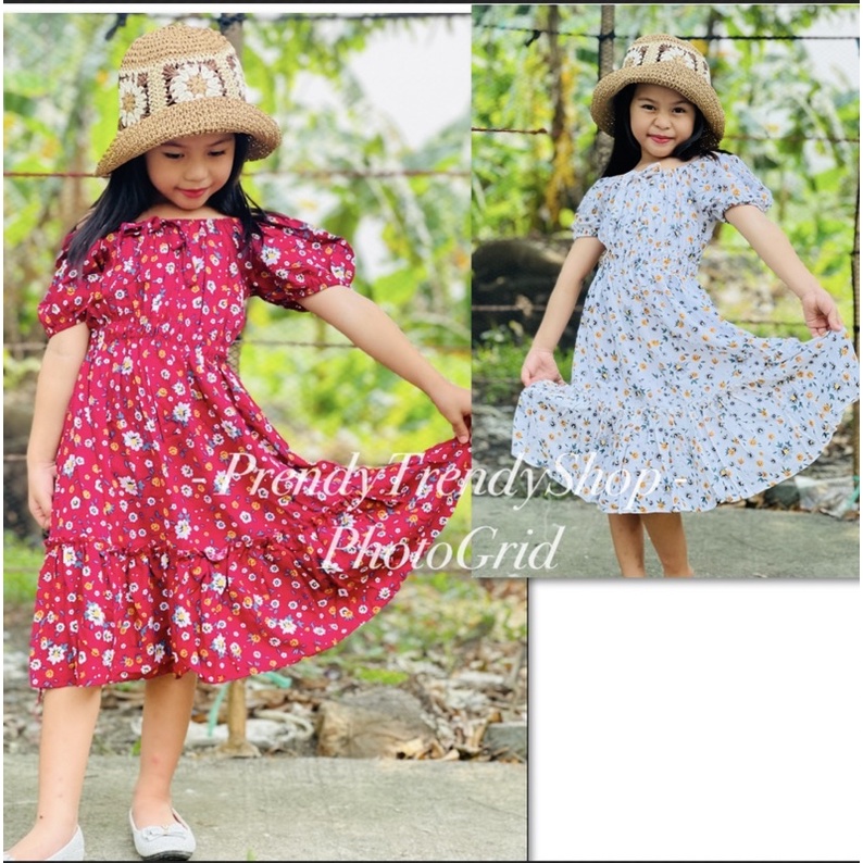 ANNA KIDS MAXI DRESS CHALLIS FABRIC PLAIN AND FLORAL PRINTS