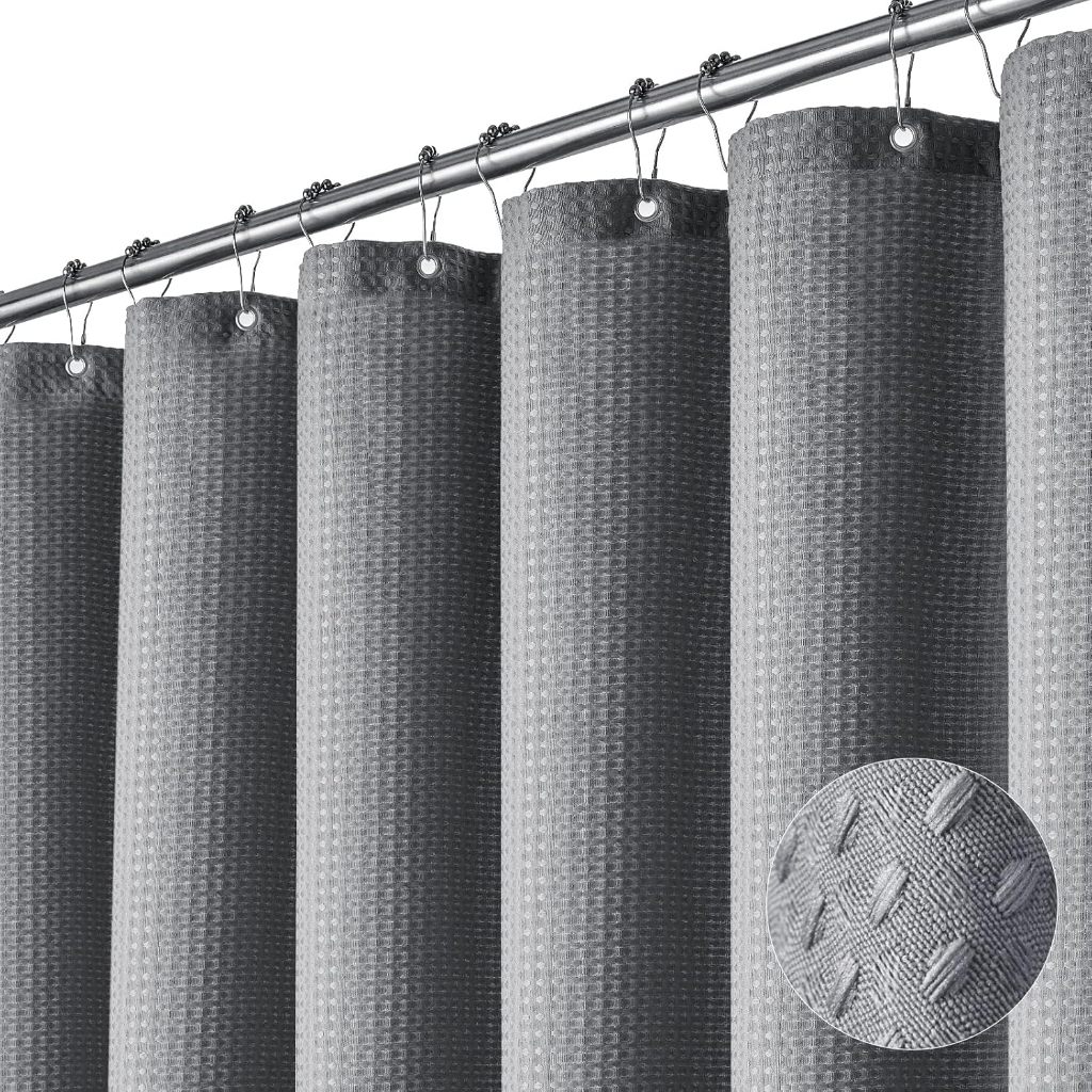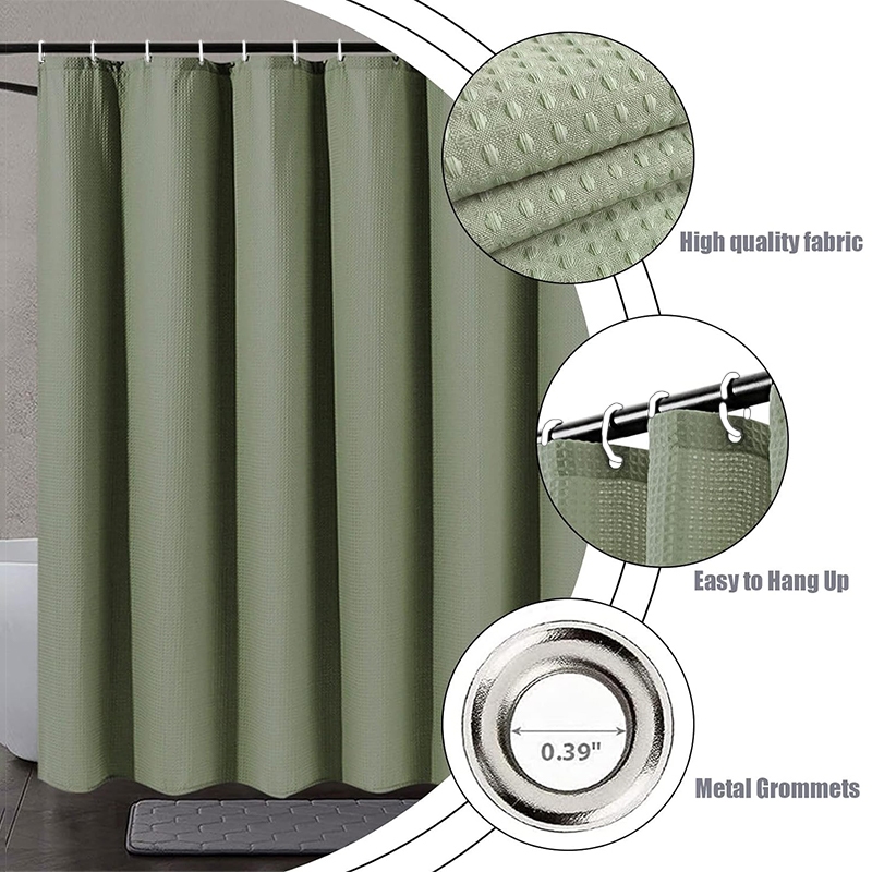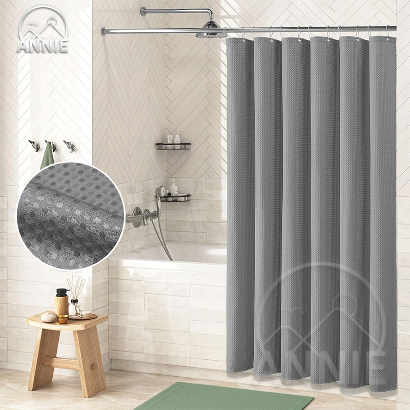 ANNIE Polyester Waffle Waterproof Makapal Non-transparent Shower Curtain For Bathroom Washable