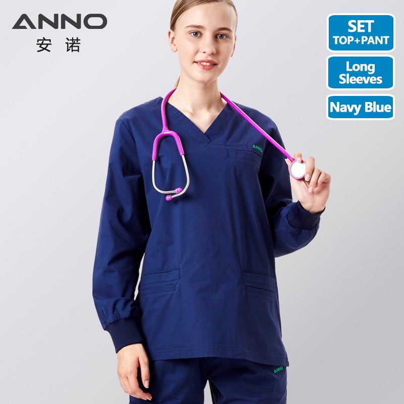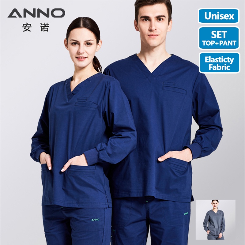 ANNO Elasticity Cotton Spandex Body Nurse Uniform For Women Men Medical Scrubs Suit Hospital Set Work Wear Nursing Clothing