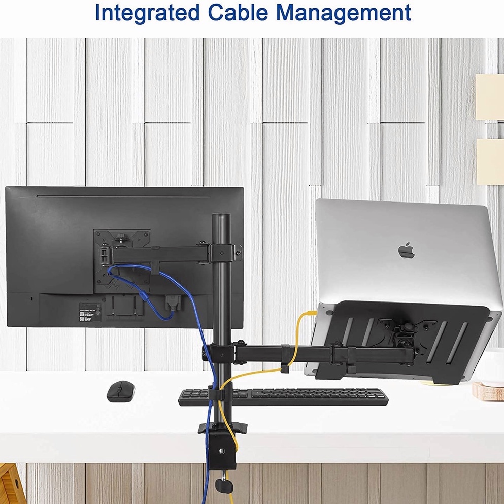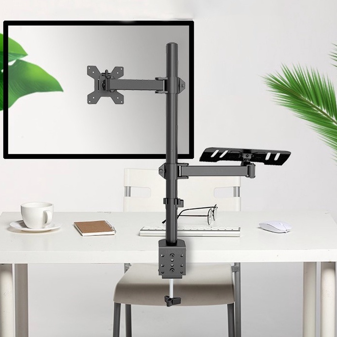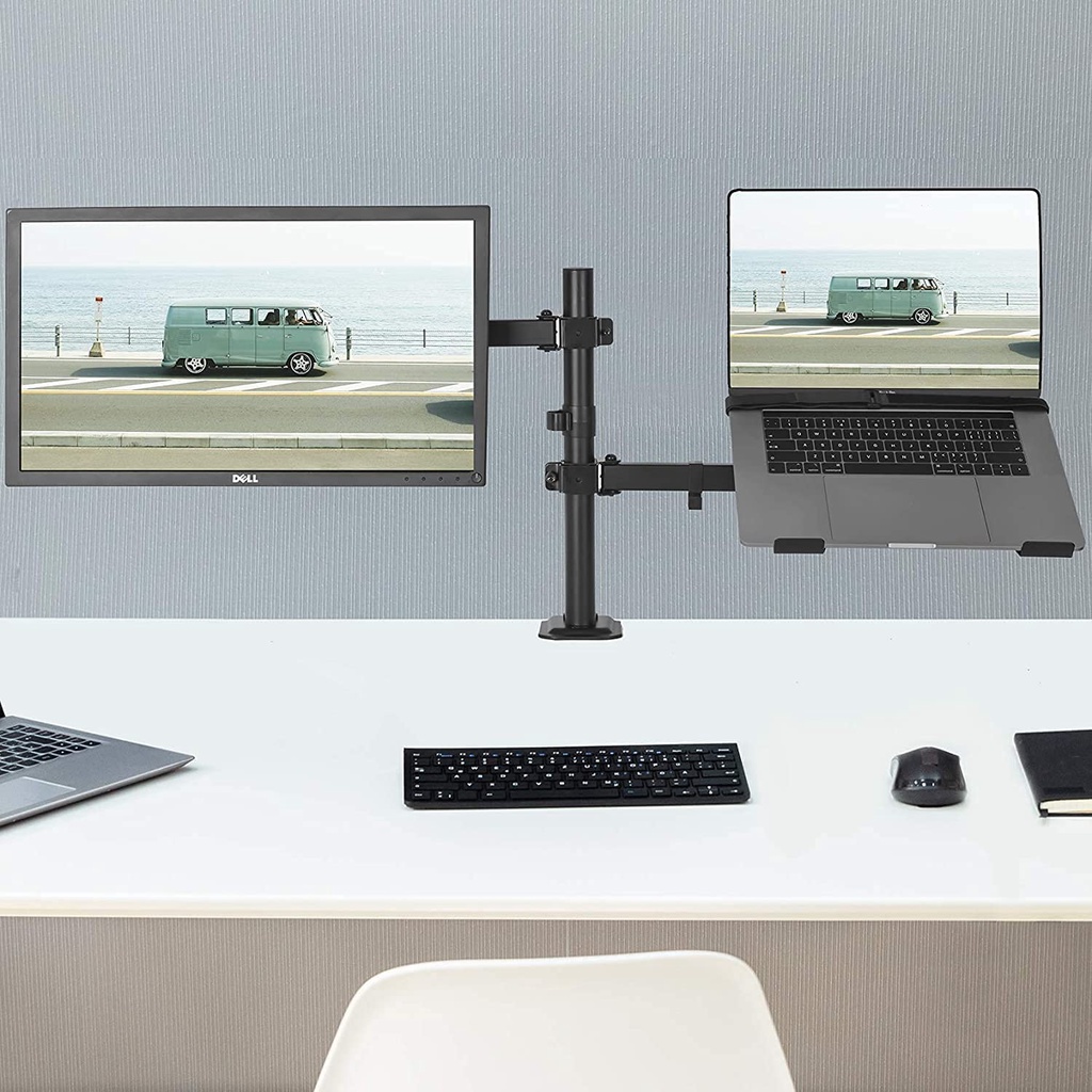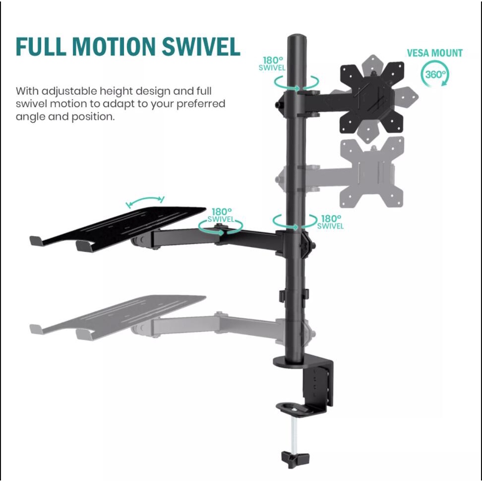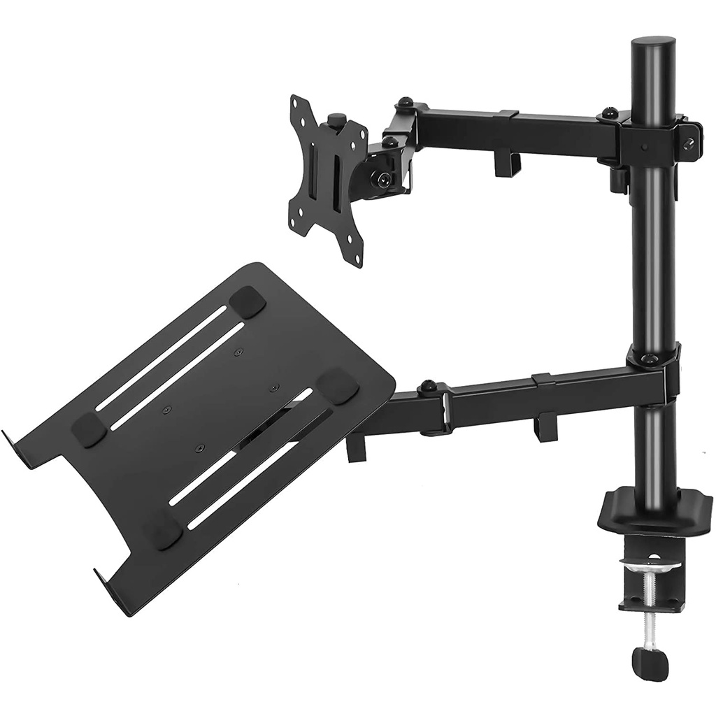 Ansen Dual Monitor Mount Bracket With Laptop Stand Tray Adjustable Arm