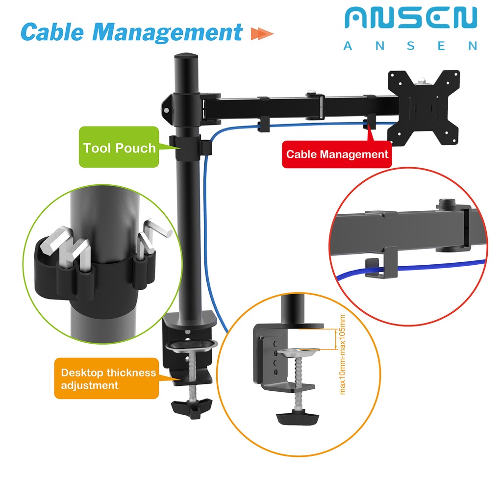 ANSEN Single Monitor Arm Mount Bracket Monitor Desktop Mount Stand Mount with C Clamp