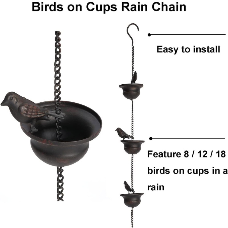 AOTO Rain Chain Gutter Catcher Rainwater Cup Unique Downspout Gutters Hanging Spout +7T