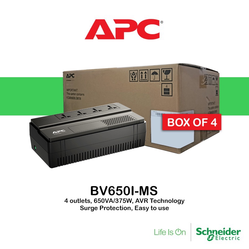 APC UPS 650VA-375W Uninterruptible Power Supply (BV650I-MS, Easy UPS, 4 Outlet, AVR/Surge) Box of 4